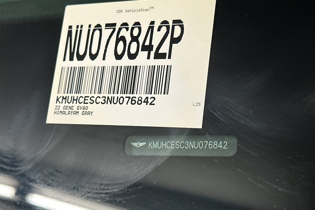 Android Auto & Apple CarPlay, Heated door mirrors, Navigation System, Reclining 3rd row seat. Android Auto & Apple CarPlay, Heated door mirrors, Navigation System, Reclining 3rd row seat, 21 Speakers, 3.909 Axle Ratio, 3rd row seats: split-bench, 4-Wheel Disc Brakes, ABS brakes, Adaptive suspension, Air Conditioning, Alloy wheels, AM/FM radio: SiriusXM, Anti-whiplash front head restraints, Auto High-beam Headlights, Auto tilt-away steering wheel, Auto-dimming door mirrors, Auto-dimming Rear-View mirror, Automatic temperature control, Brake assist, Bumpers: body-color, Compass, Delay-off headlights, Driver door bin, Driver vanity mirror, Dual front impact airbags, Dual front side impact airbags, Electronic Stability Control, Emergency communication system: Genesis Connected Services, Exterior Parking Camera Rear, Four wheel independent suspension, Front anti-roll bar, Front Bucket Seats, Front Center Armrest, Front dual zone A/C, Front reading lights, Fully automatic headlights, Garage door transmitter: HomeLink, Genuine wood console insert, Genuine wood dashboard insert, Genuine wood door panel insert, Heads-Up Display, Heated & Ventilated Front Bucket Seats, Heated front seats, Heated rear seats, Heated steering wheel, Illuminated entry, Knee airbag, Leather Seating Surfaces, Leather steering wheel, Low tire pressure warning, Memory seat, Occupant sensing airbag, Outside temperature display, Overhead airbag, Overhead console, Panic alarm, Passenger door bin, Passenger vanity mirror, Power door mirrors, Power driver seat, Power Liftgate, Power moonroof, Power passenger seat, Power steering, Power windows, Radio data system, Radio: AM/FM/SiriusXM/HD Lexicon Prem Audio System, Rain sensing wipers, Rear air conditioning, Rear anti-roll bar, Rear reading lights, Rear seat center armrest, Rear side impact airbag, Rear window defroster, Rear window wiper, Remote keyless entry, Security system, Speed control, Speed-sensing steering, Speed-Sensitive Wipers, Split folding rear seat, Spoiler, Steering wheel memory, Steering wheel mounted audio controls, Tachometer, Telescoping steering wheel, Tilt steering wheel, Traction control, Trip computer, Turn signal indicator mirrors, Variably intermittent wipers, Ventilated front seats, and Wheels: 20" x 8.5J Medium Metallic Gray Alloy.