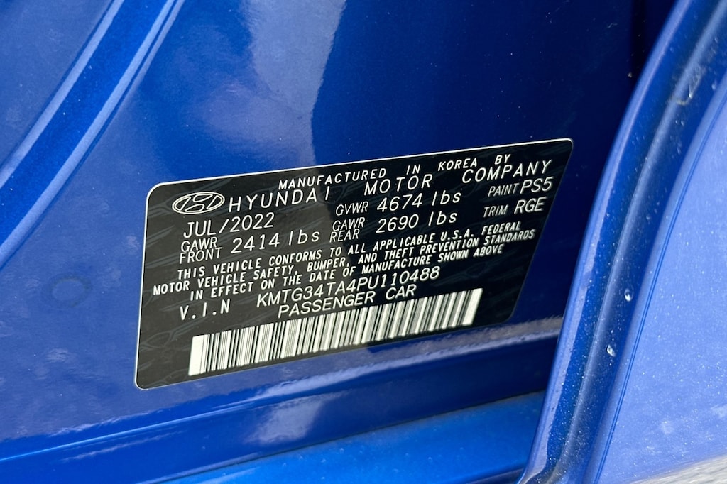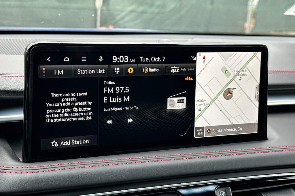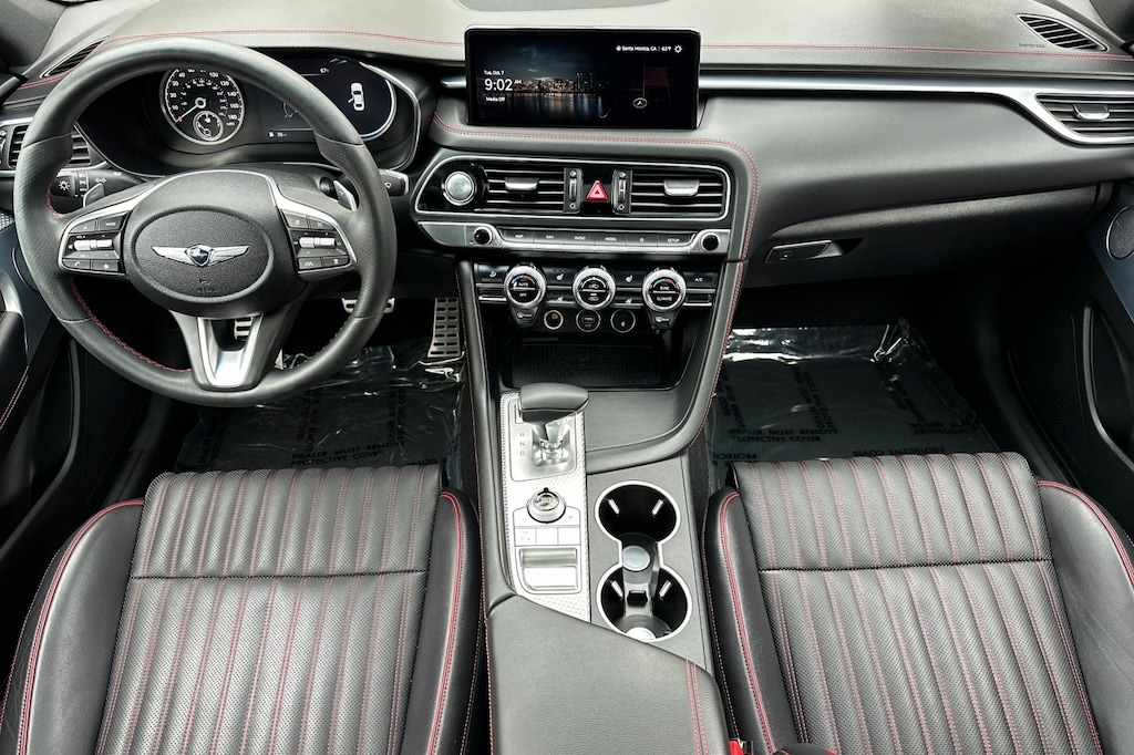 Sport Prestige Package (4-Way Power Lumbar Front Passenger Seat, Acoustic Front Door Glass, Alloy Pedals, Dark Chrome Grille & Daylight Opening Trim, Forward & Reverse Parking Distance Warning, Front Passenger Seat Walk-In Device, Integrated Memory System (IMS), Leather Seating Surfaces, Option Group 02, Power Folding ECM Outside Mirrors, Power Telescoping Steering Wheel, Radio: AM/FM/SiriusXM/HD Lexicon Prem Audio System, Rain-Sensing Wipers, Sport Aluminum Trim, Ventilated Front Seats, Wheels: 19" x 8.0J Fr & 19" x 8.5J Rr Sport Alloy, Wide Sunroof, and Wireless Device Charging), 4-Wheel Disc Brakes, 6 Speakers, ABS brakes, Air Conditioning, Alloy wheels, AM/FM radio: SiriusXM, Android Auto & Apple CarPlay, Anti-whiplash front head restraints, Auto High-beam Headlights, Auto-dimming Rear-View mirror, Automatic temperature control, Brake assist, Bumper Applique, Bumpers: body-color, Delay-off headlights, Driver door bin, Driver vanity mirror, Dual front impact airbags, Dual front side impact airbags, Electronic Stability Control, Emergency communication system: Genesis Connected Services, Exterior Parking Camera Rear, Four wheel independent suspension, Front anti-roll bar, Front Bucket Seats, Front Center Armrest, Front dual zone A/C, Front reading lights, Fully automatic headlights, Garage door transmitter: HomeLink, Heated door mirrors, Heated front seats, Heated Multi-Adjustable Front Bucket Seats, Illuminated entry, Knee airbag, Leatherette Seating Surfaces, Low tire pressure warning, Mudguards, Navigation System, Occupant sensing airbag, Outside temperature display, Overhead airbag, Overhead console, Panic alarm, Passenger door bin, Passenger vanity mirror, Power door mirrors, Power driver seat, Power passenger seat, Power steering, Power windows, Premium First Aid Kit, Radio: AM/FM/SiriusXM/HD Audio System, Rear anti-roll bar, Rear reading lights, Rear seat center armrest, Rear window defroster, Remote keyless entry, Security system, Speed control, Speed-Sensitive Wipers, Split folding rear seat, Steering wheel mounted audio controls, Tachometer, Telescoping steering wheel, Traction control, Trip computer, Turn signal indicator mirrors, Variably intermittent wipers, Wheel Locks, and Wheels: 19" x 8.0J Fr & 19" x 8.5J Rr Alloy.