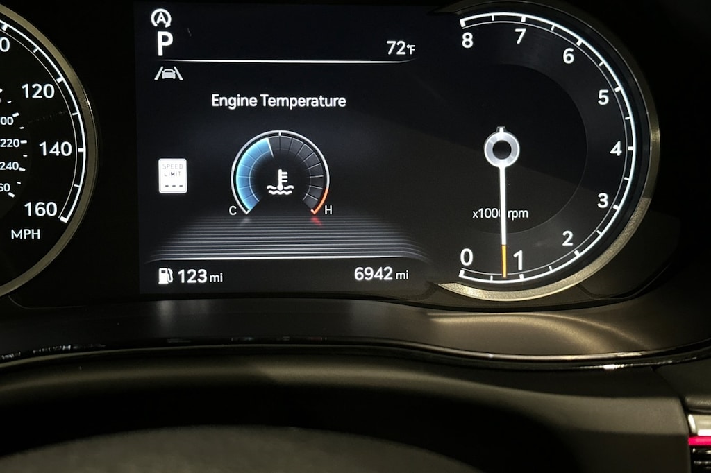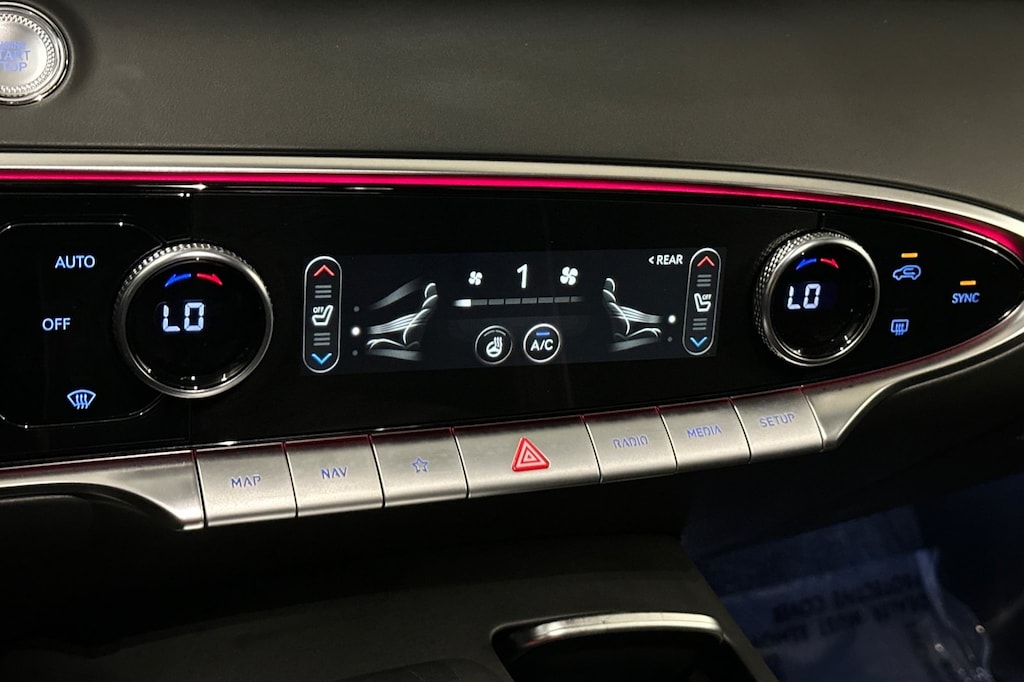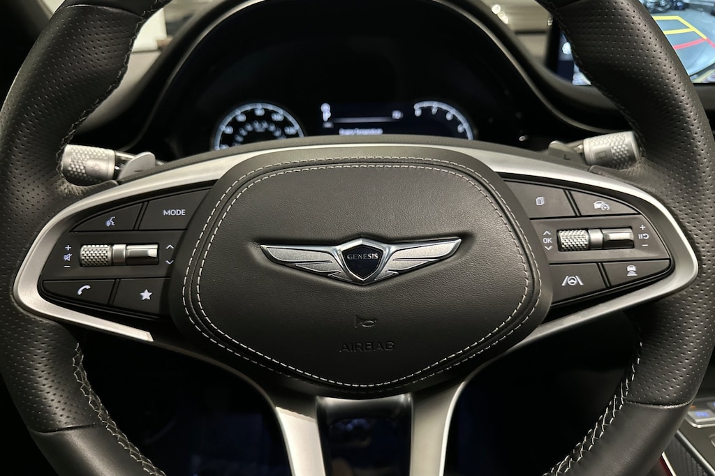 Android Auto & Apple CarPlay, Auto-dimming Rear-View mirror, Brake assist, Exterior Parking Camera Rear, Heated & Ventilated Front Bucket Seats, Memory seat, Navigation System, Option Group 01, Power Liftgate, Power moonroof, Rear Parking Sensors. Option Group 01, Android Auto & Apple CarPlay, Auto-dimming Rear-View mirror, Brake assist, Exterior Parking Camera Rear, Heated & Ventilated Front Bucket Seats, Memory seat, Navigation System, Power Liftgate, Power moonroof, Rear Parking Sensors, 4-Wheel Disc Brakes, 9 Speakers, ABS brakes, Adaptive suspension, Air Conditioning, Alloy wheels, AM/FM radio: SiriusXM, Anti-whiplash front head restraints, Auto High-beam Headlights, Auto-dimming door mirrors, Automatic temperature control, Bumpers: body-color, Cargo Cover, Delay-off headlights, Driver door bin, Driver vanity mirror, Dual front impact airbags, Dual front side impact airbags, Electronic Stability Control, Emergency communication system: Genesis Connected Services, First Aid Kit, Four wheel independent suspension, Front anti-roll bar, Front Bucket Seats, Front Center Armrest w/Storage, Front dual zone A/C, Front reading lights, Fully automatic headlights, Garage door transmitter: HomeLink, Heated door mirrors, Heated front seats, Heated steering wheel, Illuminated entry, Knee airbag, Leather Seating Surfaces w/Mesh Insert, Leather steering wheel, Low tire pressure warning, Occupant sensing airbag, Outside temperature display, Overhead airbag, Overhead console, Panic alarm, Passenger door bin, Passenger vanity mirror, Power door mirrors, Power driver seat, Power passenger seat, Power steering, Power windows, Radio: 14.5" Navigation System w/AM/FM/HD Radio, Rain sensing wipers, Rear anti-roll bar, Rear reading lights, Rear seat center armrest, Rear window defroster, Rear window wiper, Remote keyless entry, Roadside Assistance Kit, Security system, Speed control, Speed-sensing steering, Speed-Sensitive Wipers, Split folding rear seat, Spoiler, Steering wheel memory, Steering wheel mounted audio controls, Tachometer, Telescoping steering wheel, Traction control, Trip computer, Turn signal indicator mirrors, Variably intermittent wipers, Ventilated front seats, Wheel Locks, and Wheels: 19" Dark Hyper Silver Sport Alloy.