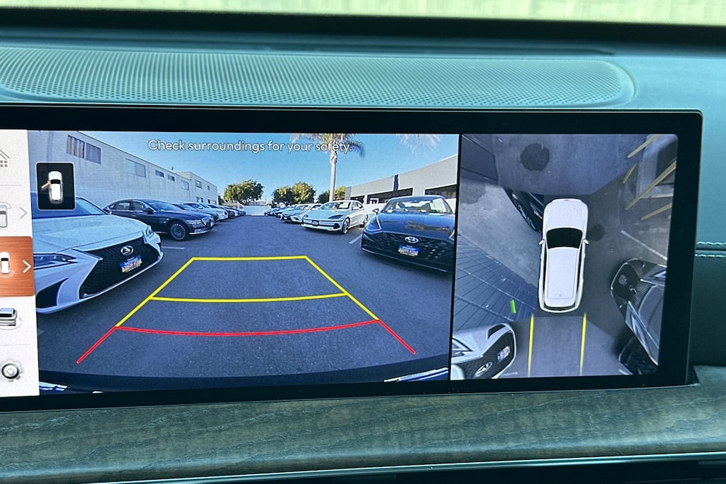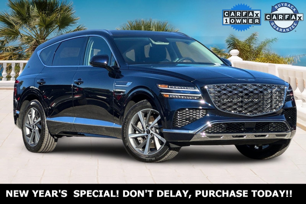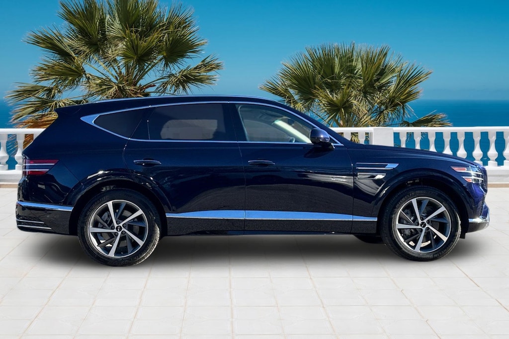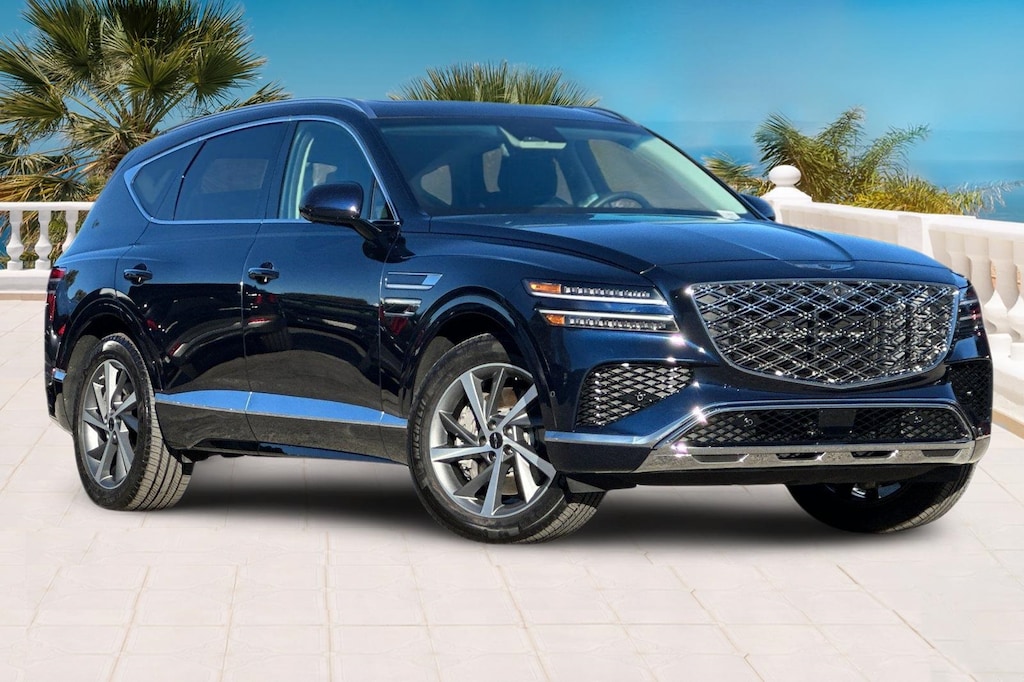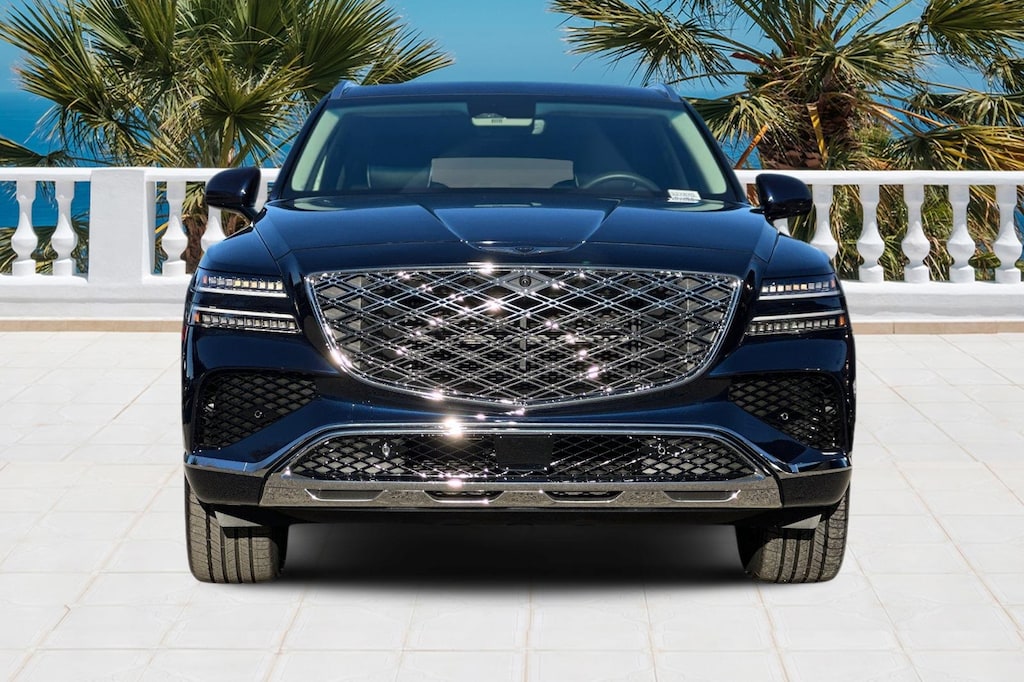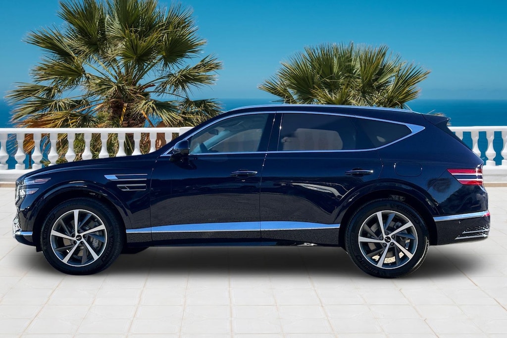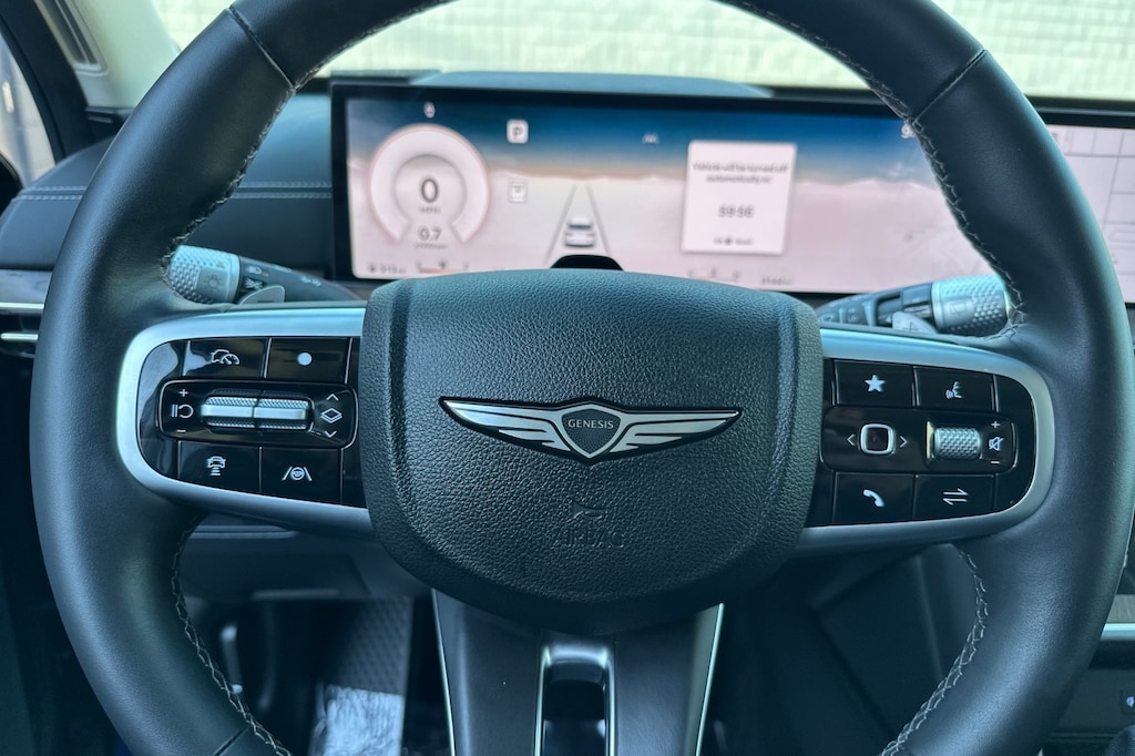 Option Group 01, 18 Speakers, 3rd row seats: split-bench, 4-Wheel Disc Brakes, ABS brakes, Adaptive suspension, Air Conditioning, Alloy wheels, AM/FM radio: SiriusXM, Anti-whiplash front head restraints, Auto High-beam Headlights, Auto tilt-away steering wheel, Auto-dimming door mirrors, Auto-dimming Rear-View mirror, Automatic temperature control, Brake assist, Bumpers: body-color, Compass, Delay-off headlights, Driver door bin, Driver vanity mirror, Dual front impact airbags, Dual front side impact airbags, Electronic Stability Control, Emergency communication system: Genesis Connected Services, Exterior Parking Camera Rear, Four wheel independent suspension, Fragrance Cartridge, Front anti-roll bar, Front Bucket Seats, Front Center Armrest, Front dual zone A/C, Front reading lights, Fully automatic headlights, Garage door transmitter: HomeLink, Genuine wood console insert, Genuine wood dashboard insert, Genuine wood door panel insert, Heads-Up Display, Heated & Ventilated Front Bucket Seats, Heated door mirrors, Heated front seats, Heated rear seats, Heated steering wheel, Illuminated entry, Knee airbag, Leather Seating Surfaces, Leather steering wheel, Low tire pressure warning, Memory seat, Navigation System, NFC Key Card, Occupant sensing airbag, Outside temperature display, Overhead airbag, Overhead console, Panic alarm, Passenger door bin, Passenger vanity mirror, Power door mirrors, Power driver seat, Power Liftgate, Power moonroof, Power passenger seat, Power steering, Power windows, Radio data system, Radio: AM/FM/SiriusXM/HD Bang & Olufsen Sound Sys, Rain sensing wipers, Rear air conditioning, Rear anti-roll bar, Rear reading lights, Rear seat center armrest, Rear side impact airbag, Rear window defroster, Rear window wiper, Reclining 3rd row seat, Remote keyless entry, Security system, Speed control, Speed-sensing steering, Speed-Sensitive Wipers, Split folding rear seat, Spoiler, Steering wheel memory, Steering wheel mounted audio controls, Tachometer, Telescoping steering wheel, Tilt steering wheel, Traction control, Trip computer, Turn signal indicator mirrors, Variably intermittent wipers, Ventilated front seats, Wheel Locks, and Wheels: 20" x 8.5J Dark Gray Matte Alloy.