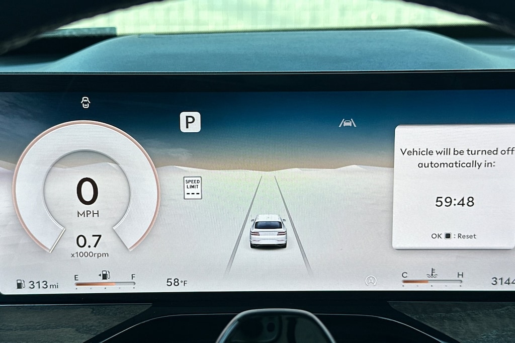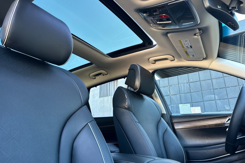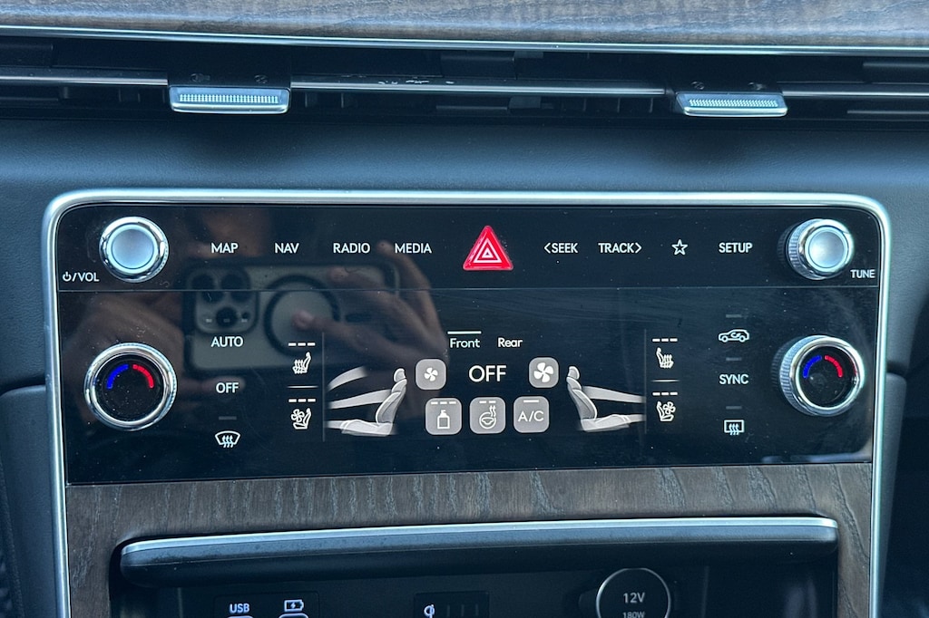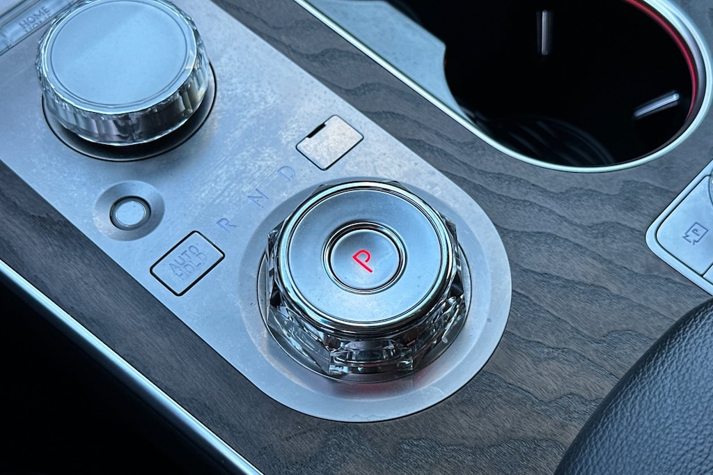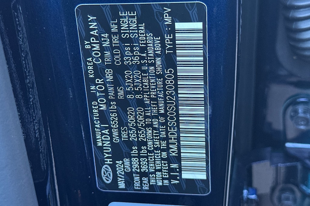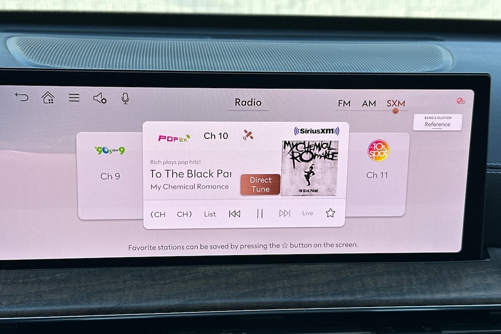 Option Group 01, 18 Speakers, 3rd row seats: split-bench, 4-Wheel Disc Brakes, ABS brakes, Adaptive suspension, Air Conditioning, Alloy wheels, AM/FM radio: SiriusXM, Anti-whiplash front head restraints, Auto High-beam Headlights, Auto tilt-away steering wheel, Auto-dimming door mirrors, Auto-dimming Rear-View mirror, Automatic temperature control, Brake assist, Bumpers: body-color, Compass, Delay-off headlights, Driver door bin, Driver vanity mirror, Dual front impact airbags, Dual front side impact airbags, Electronic Stability Control, Emergency communication system: Genesis Connected Services, Exterior Parking Camera Rear, Four wheel independent suspension, Fragrance Cartridge, Front anti-roll bar, Front Bucket Seats, Front Center Armrest, Front dual zone A/C, Front reading lights, Fully automatic headlights, Garage door transmitter: HomeLink, Genuine wood console insert, Genuine wood dashboard insert, Genuine wood door panel insert, Heads-Up Display, Heated & Ventilated Front Bucket Seats, Heated door mirrors, Heated front seats, Heated rear seats, Heated steering wheel, Illuminated entry, Knee airbag, Leather Seating Surfaces, Leather steering wheel, Low tire pressure warning, Memory seat, Navigation System, NFC Key Card, Occupant sensing airbag, Outside temperature display, Overhead airbag, Overhead console, Panic alarm, Passenger door bin, Passenger vanity mirror, Power door mirrors, Power driver seat, Power Liftgate, Power moonroof, Power passenger seat, Power steering, Power windows, Radio data system, Radio: AM/FM/SiriusXM/HD Bang & Olufsen Sound Sys, Rain sensing wipers, Rear air conditioning, Rear anti-roll bar, Rear reading lights, Rear seat center armrest, Rear side impact airbag, Rear window defroster, Rear window wiper, Reclining 3rd row seat, Remote keyless entry, Security system, Speed control, Speed-sensing steering, Speed-Sensitive Wipers, Split folding rear seat, Spoiler, Steering wheel memory, Steering wheel mounted audio controls, Tachometer, Telescoping steering wheel, Tilt steering wheel, Traction control, Trip computer, Turn signal indicator mirrors, Variably intermittent wipers, Ventilated front seats, Wheel Locks, and Wheels: 20" x 8.5J Dark Gray Matte Alloy.