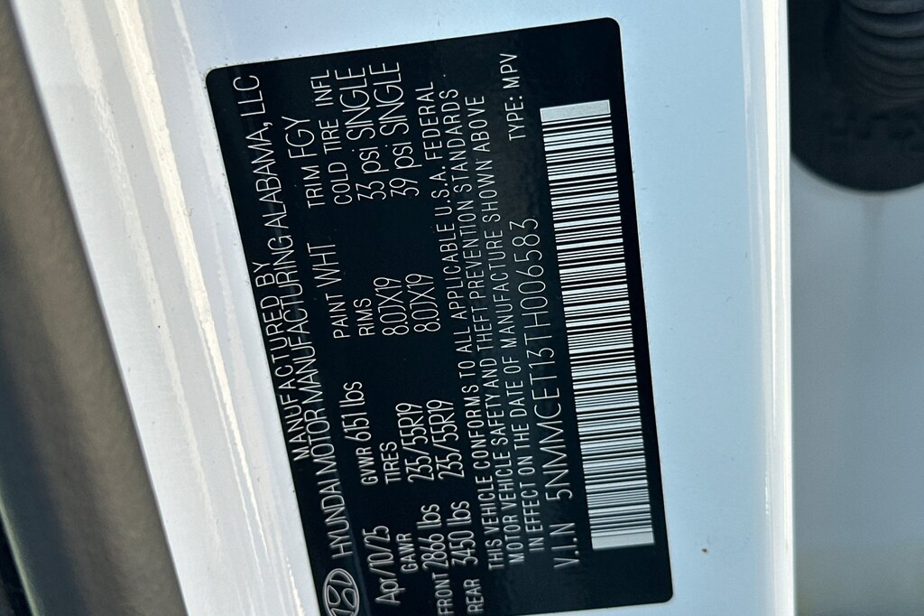 - Front tires: 235/55VR19.0