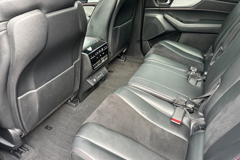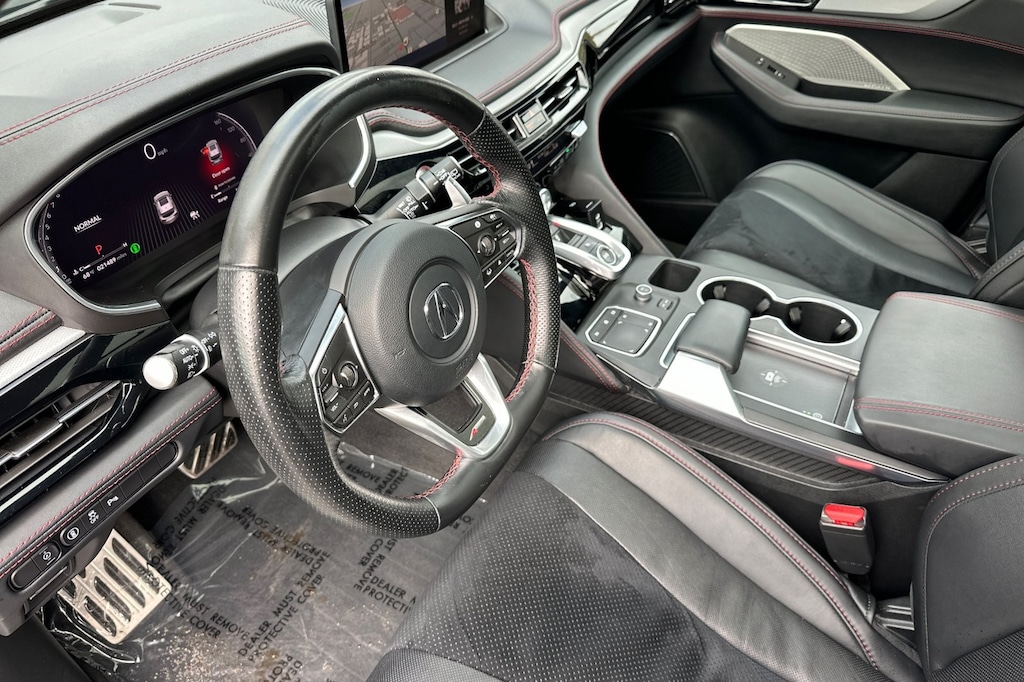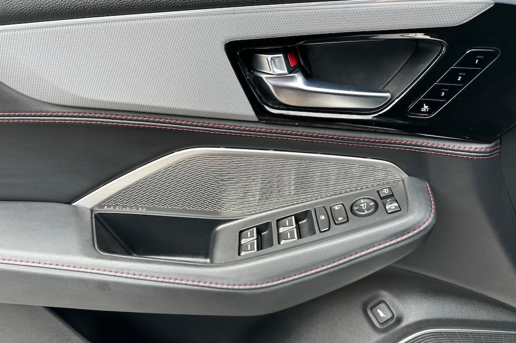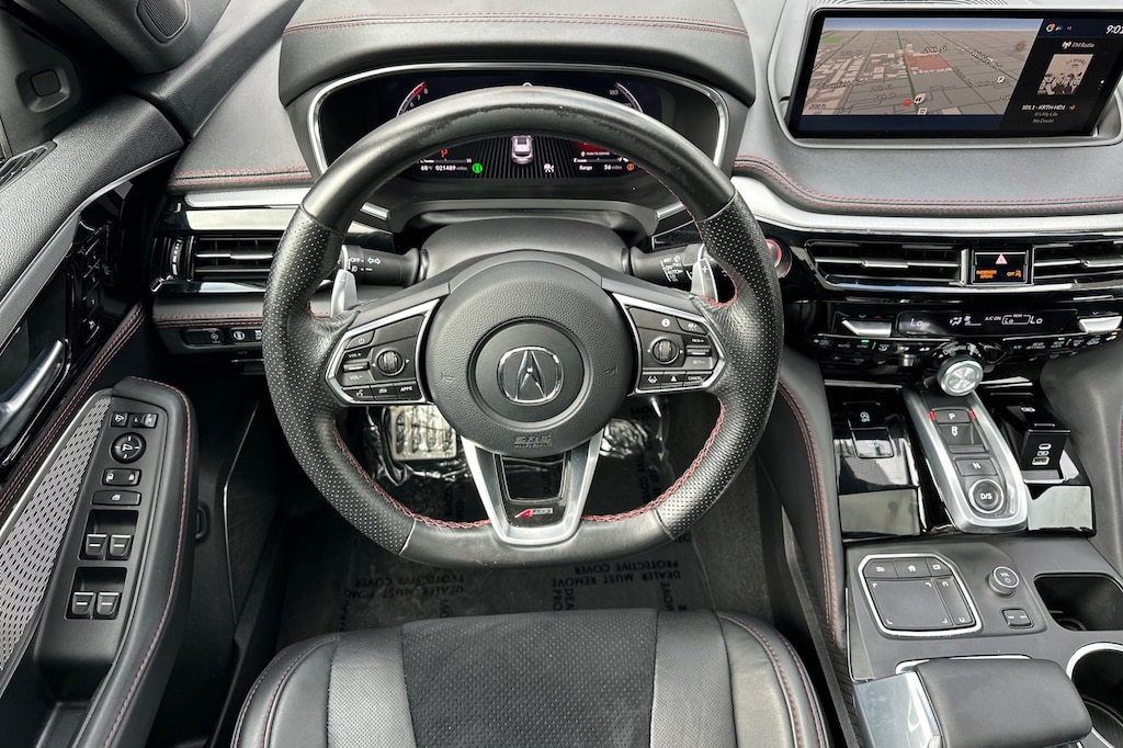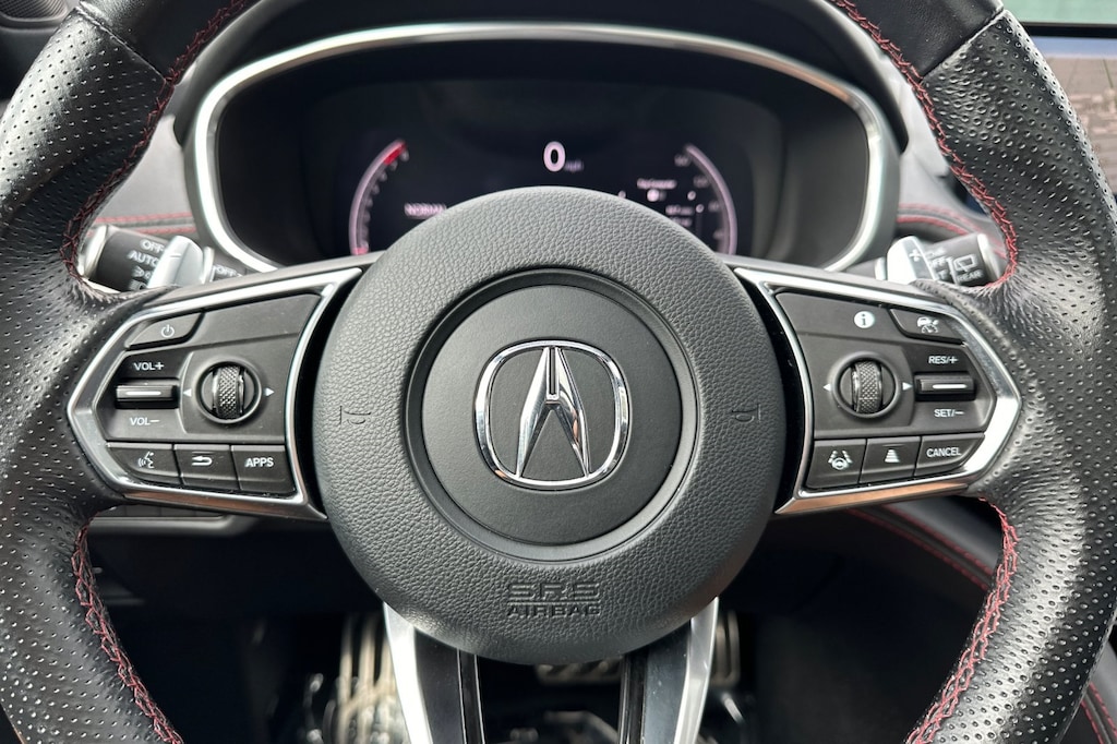 3rd row seats: split-bench, Apple CarPlay/Android Auto, Auto tilt-away steering wheel, Exterior Parking Camera Rear, Front dual zone A/C, Heated & Ventilated Front Sport Seats, Heated front seats, Navigation system: Acura Navigation System with 3D View, Power Liftgate, Power moonroof, Radio: ELS Studio 3D Premium Audio System, Spoiler, Ventilated front seats. 3rd row seats: split-bench, Apple CarPlay/Android Auto, Auto tilt-away steering wheel, Exterior Parking Camera Rear, Front dual zone A/C, Heated & Ventilated Front Sport Seats, Heated front seats, Navigation system: Acura Navigation System with 3D View, Power Liftgate, Power moonroof, Radio: ELS Studio 3D Premium Audio System, Spoiler, Ventilated front seats, 16 Speakers, 4-Wheel Disc Brakes, 4.17 Axle Ratio, A/V remote: CabinControl, ABS brakes, Air Conditioning, Alloy wheels, AM/FM radio: SiriusXM, Anti-whiplash front head restraints, Audio memory, Auto High-beam Headlights, Auto-dimming Rear-View mirror, Automatic temperature control, Brake assist, Bumpers: body-color, Compass, Delay-off headlights, Driver door bin, Driver vanity mirror, Dual front impact airbags, Dual front side impact airbags, Electronic Stability Control, Emergency communication system: AcuraLink, Four wheel independent suspension, Front anti-roll bar, Front Bucket Seats, Front Center Armrest, Front fog lights, Front reading lights, Fully automatic headlights, Garage door transmitter: HomeLink, Heated door mirrors, HVAC memory, Illuminated entry, Knee airbag, Lane departure: Lane Keeping Assist System (LKAS) active, Leather steering wheel, Low tire pressure warning, Memory seat, Occupant sensing airbag, Outside temperature display, Overhead airbag, Overhead console, Panic alarm, Passenger door bin, Passenger vanity mirror, Perforated Premium Milano Leather Trimmed Seats, Power door mirrors, Power driver seat, Power passenger seat, Power steering, Power windows, Premium audio system: Acura/ELS Studio 3D, Radio data system, Rain sensing wipers, Rear air conditioning, Rear anti-roll bar, Rear reading lights, Rear seat center armrest, Rear window defroster, Rear window wiper, Remote keyless entry, Security system, Speed control, Speed-sensing steering, Speed-Sensitive Wipers, Split folding rear seat, Sport steering wheel, Steering wheel memory, Steering wheel mounted audio controls, Tachometer, Telescoping steering wheel, Tilt steering wheel, Traction control, Trip computer, Turn signal indicator mirrors, Variably intermittent wipers, and Wheels: 20" x 9" Aluminum Alloy.