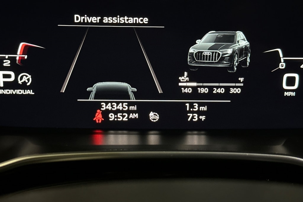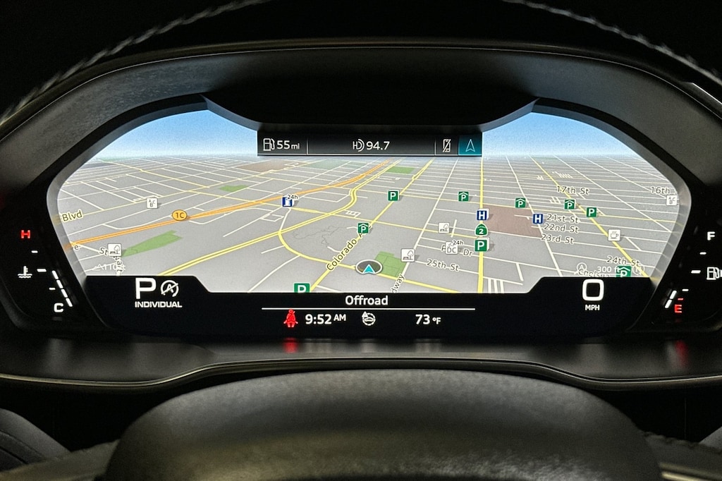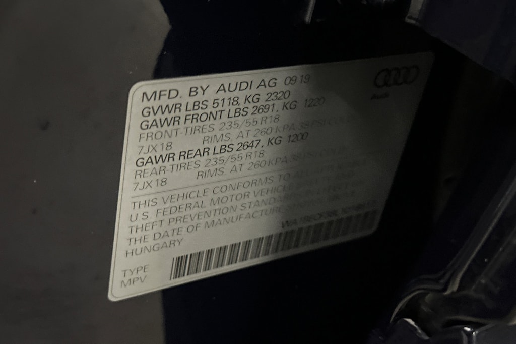 12.3" Audi Virtual Cockpit Screen, 8-Way Power Driver & Passenger Seat, Adaptive Cruise Control w/Stop & Go, Alarm w/Motion Sensor, Aluminum Spectrum Inlays, Audi Advanced Key, Audi Connect PRIME & PLUS, Audi Parking System Plus, Audi Phone Box w/Wireless Charging, Audi Side Assist, Auto-Dimming Rear-View Mirror w/Compass, Convenience Package, Driver Assistance Package, Full LED Headlights w/Unique DRL Signature, Heated front seats, HomeLink Garage Door Opener, LED Interior Lighting, MMI Navigation Plus, MMI Touch Response, Navigation Package, Premium Plus Package, SiriusXM All Access Service. Convenience Package (Alarm w/Motion Sensor, Audi Advanced Key, Audi Parking System Plus, Audi Side Assist, HomeLink Garage Door Opener, and SiriusXM All Access Service), Driver Assistance Package (Adaptive Cruise Control w/Stop & Go), Navigation Package (12.3" Audi Virtual Cockpit Screen, Audi Connect PRIME & PLUS, MMI Navigation Plus, and MMI Touch Response), Premium Plus Package (8-Way Power Driver & Passenger Seat, Aluminum Spectrum Inlays, Audi Phone Box w/Wireless Charging, Auto-Dimming Rear-View Mirror w/Compass, Full LED Headlights w/Unique DRL Signature, and LED Interior Lighting), Heated front seats, 10 Speakers, 3.533 Axle Ratio, 4-Wheel Disc Brakes, ABS brakes, Air Conditioning, Alloy wheels, AM/FM radio, Audi Beam-Rings, Audi Cargo Box, Audi smartphone interface (Apple CarPlay/Android Auto), Auto High-beam Headlights, Automatic temperature control, Bang & Olufsen 3D Sound System, Brake assist, Brown Gray Natural Wood Matte Inlays, Bumpers: body-color, Delay-off headlights, Driver door bin, Driver vanity mirror, Dual front impact airbags, Dual front side impact airbags, Electronic Stability Control, Exterior Parking Camera Rear, Four wheel independent suspension, Front anti-roll bar, Front Bucket Seats, Front Center Armrest, Front dual zone A/C, Front fog lights, Front reading lights, Fully automatic headlights, Heated door mirrors, Heated Front Bucket Seats, Illuminated entry, Knee airbag, Leather Seating Surfaces, Leather Shift Knob, Leather steering wheel, Low tire pressure warning, Occupant sensing airbag, Outside temperature display, Overhead airbag, Overhead console, Panic alarm, Passenger door bin, Passenger vanity mirror, Power door mirrors, Power driver seat, Power Liftgate, Power moonroof, Power steering, Power windows, Radio data system, Radio: Audi Sound System, Rain sensing wipers, Rear air conditioning, Rear anti-roll bar, Rear fog lights, Rear Load Sill/Door Cup/Door Edge Paint Protection, Rear reading lights, Rear seat center armrest, Rear window defroster, Rear window wiper, Remote keyless entry, Speed control, Speed-sensing steering, Split folding rear seat, Spoiler, Steering wheel mounted audio controls, Tachometer, Telescoping steering wheel, Tilt steering wheel, Traction control, Trip computer, Turn signal indicator mirrors, Variably intermittent wipers, and Wheels: 18" 5-Arm Design.
