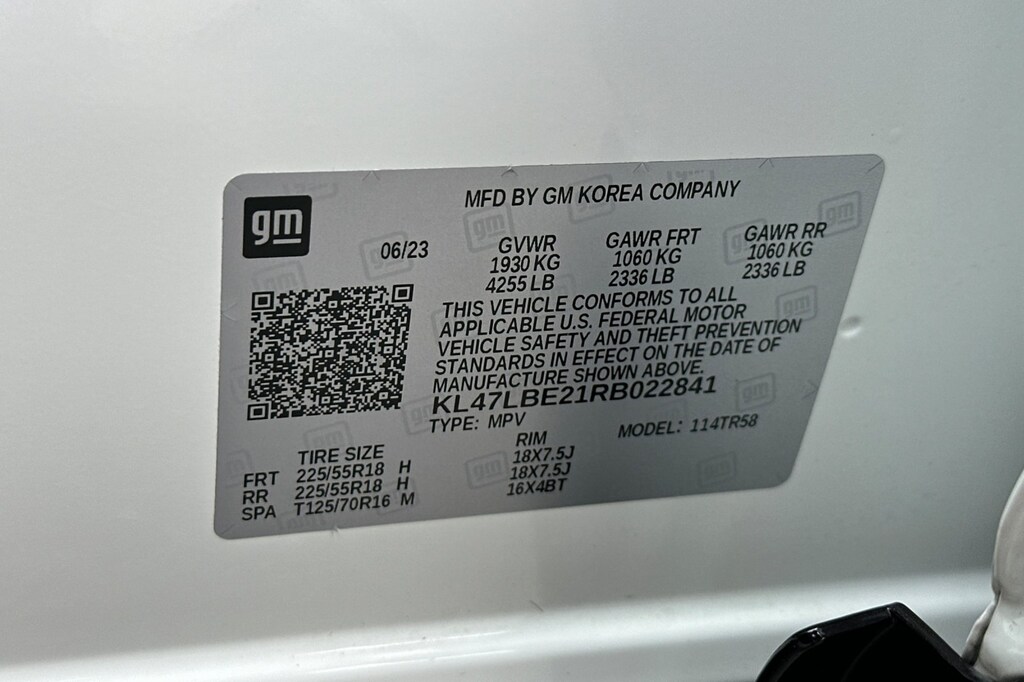 Preferred Equipment Group G03, 2 USB Ports (1 Type-A, 1 Type-C), 3.50 Final Drive Axle Ratio, 4-Way Manual Passenger Seat Adjuster, 4-Wheel Disc Brakes, 6 Speakers, 6-Way Manual Driver Seat Adjuster, ABS brakes, Air Conditioning, Alloy wheels, AM/FM radio: SiriusXM, Auto High-beam Headlights, Automatic temperature control, Brake assist, Bumpers: body-color, Compass, Delay-off headlights, Driver door bin, Driver vanity mirror, Dual front impact airbags, Dual front side impact airbags, Electronic Stability Control, Emergency communication system: OnStar, Exterior Parking Camera Rear, Front anti-roll bar, Front Bucket Seats, Front Center Armrest, Front License Plate Bracket, Front reading lights, Front wheel independent suspension, Fully automatic headlights, Heated door mirrors, Illuminated entry, Leatherette Seat Trim, Low tire pressure warning, Occupant sensing airbag, Outside temperature display, Overhead airbag, Overhead console, Panic alarm, Passenger door bin, Passenger vanity mirror, Power door mirrors, Power steering, Power windows, Premium 6-Speaker Audio System Feature, Radio data system, Radio: AM/FM Stereo Audio System, Rear window defroster, Remote keyless entry, Security system, SiriusXM, Speed control, Split folding rear seat, Steering wheel mounted audio controls, Tachometer, Telescoping steering wheel, Tilt steering wheel, Traction control, Trip computer, Turn signal indicator mirrors, Variably intermittent wipers, Wheels: 18" Black Painted Aluminum, and Wireless Apple CarPlay/Wireless Android Auto.