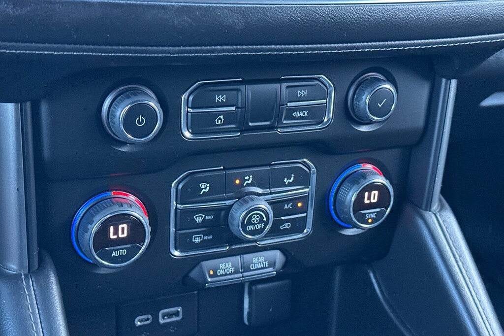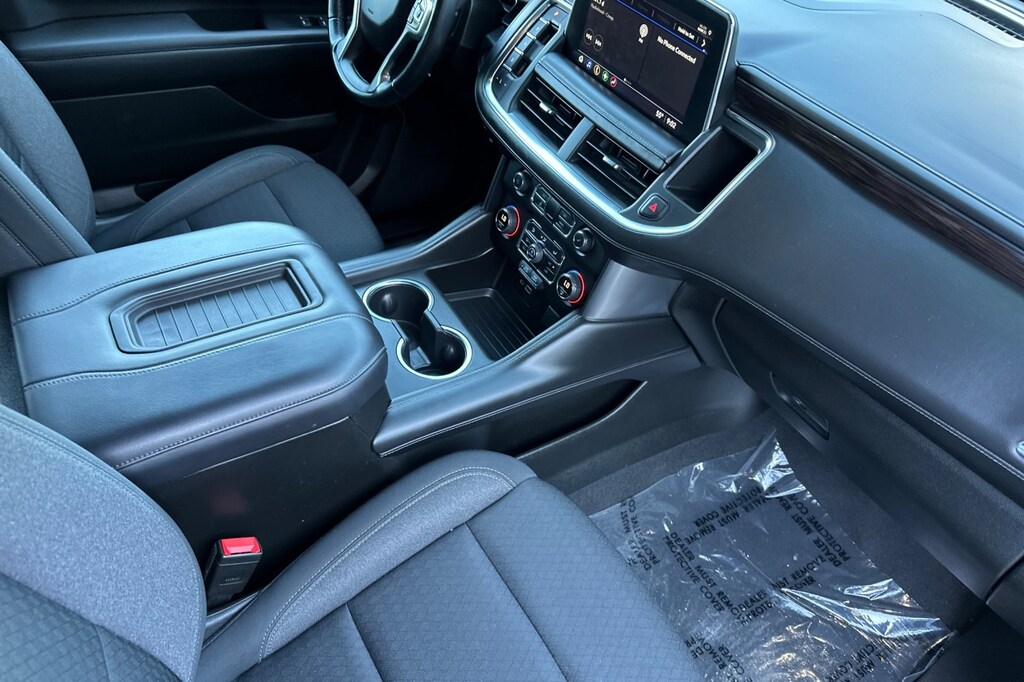 1st & 2nd Row Color-Keyed Carpeted Floor Mats, 2 USB Data Ports, Color-Keyed Carpeting Floor Covering, Driver & Front Outboard Passenger Airbags, Floor Console w/Storage Area, HD Radio, Infotainment Display, Leather-Wrapped Steering Wheel, LED Daytime Running Lamps, Preferred Equipment Group 1LS, Remote Start, SiriusXM Radio w/360L. Preferred Equipment Group 1LS (1st & 2nd Row Color-Keyed Carpeted Floor Mats, 2 USB Data Ports, Color-Keyed Carpeting Floor Covering, Driver & Front Outboard Passenger Airbags, Floor Console w/Storage Area, HD Radio, Infotainment Display, Leather-Wrapped Steering Wheel, LED Daytime Running Lamps, Remote Start, and SiriusXM Radio w/360L), License Plate Front Mounting Package, 3.23 Rear Axle Ratio, 3rd row seats: split-bench, 4-Wheel Disc Brakes, 6 Speakers, 6-Speaker Audio System Feature, ABS brakes, Air Conditioning, All-Weather Floor Mats, Alloy wheels, AM/FM radio: SiriusXM with 360L, Apple CarPlay/Android Auto, Auto High-beam Headlights, Automatic temperature control, Brake assist, Bumpers: body-color, Compass, Delay-off headlights, Driver door bin, Driver vanity mirror, Dual front impact airbags, Dual front side impact airbags, Electronic Stability Control, Emergency communication system: OnStar and Chevrolet connected services capable, Four wheel independent suspension, Front anti-roll bar, Front Bucket Seats, Front Center Armrest, Front dual zone A/C, Front High-Back Reclining Bucket Seats, Front reading lights, Fully automatic headlights, Heated door mirrors, Illuminated entry, Leather steering wheel, Low tire pressure warning, Not Equipped w/Automatic Stop/Start, Not Equipped w/Steering Column Lock, Occupant sensing airbag, Outside temperature display, Overhead airbag, Overhead console, Panic alarm, Passenger door bin, Passenger vanity mirror, Polished Exhaust Tip, Power door mirrors, Power driver seat, Power passenger seat, Power steering, Power windows, Premium audio system: Chevrolet Infotainment 3, Premium Cloth Seat Trim, Premium Smooth Ride Suspension, Radio: Chevrolet Infotainment 3 Plus System, Rain sensing wipers, Rear air conditioning, Rear anti-roll bar, Rear reading lights, Rear seat center armrest, Rear window defroster, Rear window wiper, Reflective Window Shade (LPO), Remote keyless entry, Roof rack: rails only, Security system, Set of 4 Wheel Locks (LPO), Speed control, Speed-sensing steering, Split folding rear seat, Spoiler, Steering wheel mounted audio controls, Tachometer, Telescoping steering wheel, Tilt steering wheel, Traction control, Trip computer, Variably intermittent wipers, Voltmeter, and Wheels: 18" x 8.5" Bright Silver Painted Aluminum.