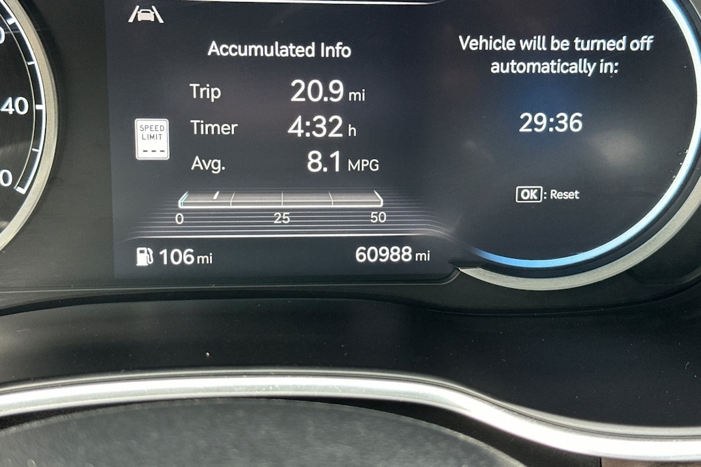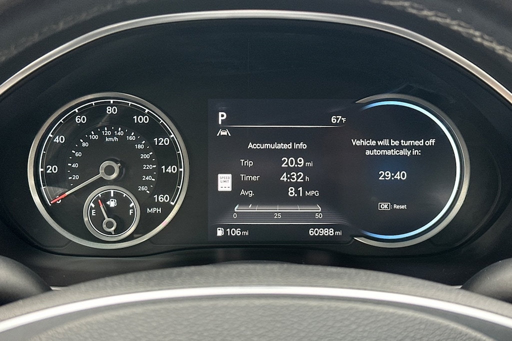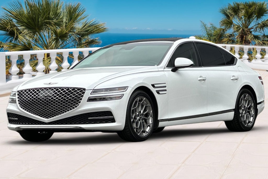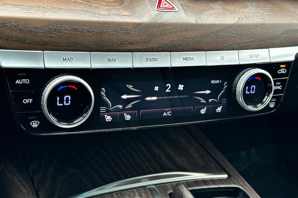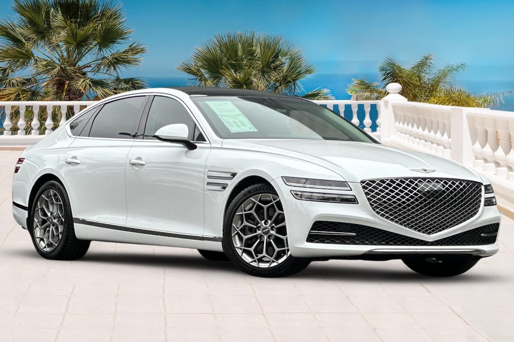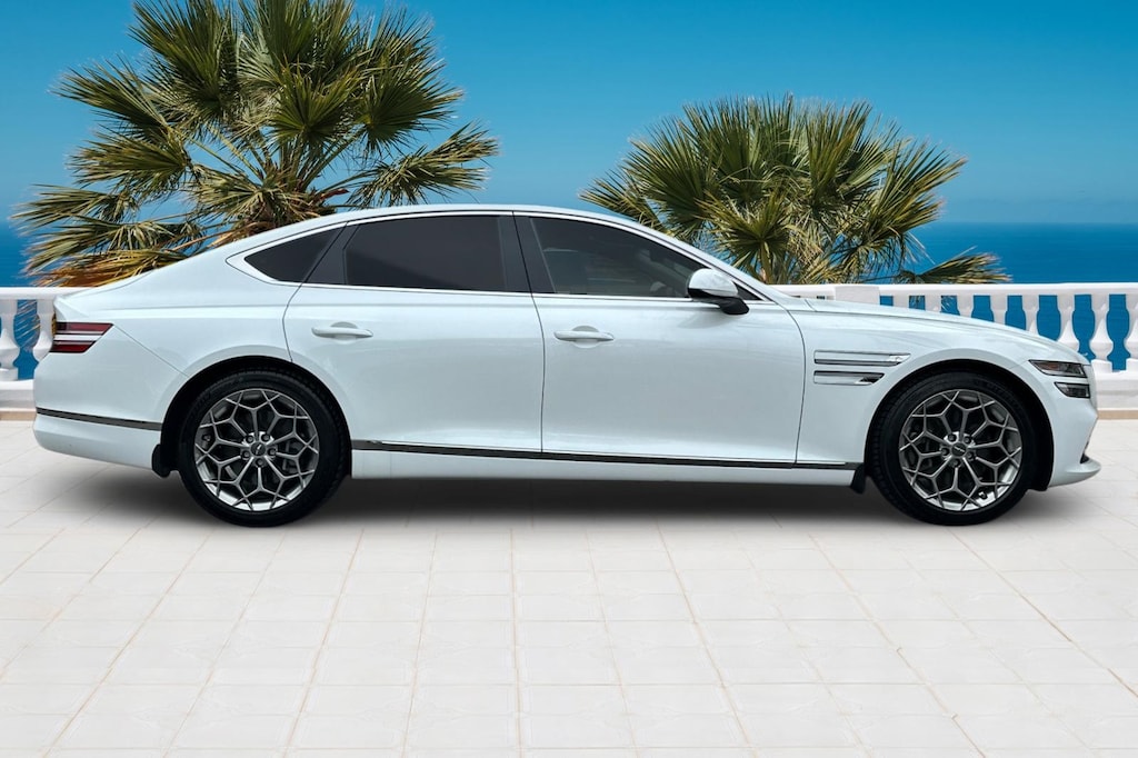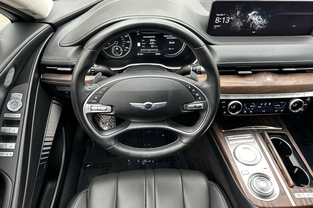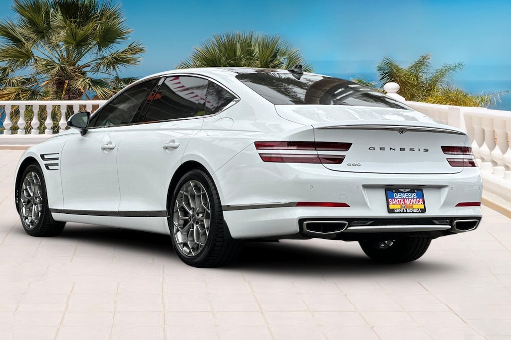 Advanced Package, Android Auto & Apple CarPlay, Exterior Parking Camera Rear, Heated Front Bucket Seats, Option Group 02, Panoramic Roof. Advanced Package (Option Group 02, Panoramic Roof, Matte Finish Wood Trim, Power Rear & Manual Rear Side Sunshades, Power Trunk, and Ventilated Front Seats), Android Auto & Apple CarPlay, Exterior Parking Camera Rear, Heated Front Bucket Seats, 12 Speakers, 4-Wheel Disc Brakes, ABS brakes, Air Conditioning, Alloy wheels, AM/FM radio: SiriusXM, Anti-whiplash front head restraints, Auto High-beam Headlights, Auto tilt-away steering wheel, Auto-dimming door mirrors, Auto-dimming Rear-View mirror, Automatic temperature control, Bumpers: body-color, Compass, Delay-off headlights, Driver door bin, Driver vanity mirror, Dual front impact airbags, Dual front side impact airbags, Electronic Stability Control, Emergency communication system: Genesis Connected Services, First Aid Kit, Forward Collision-Avoidance Assist, Four wheel independent suspension, Front anti-roll bar, Front Bucket Seats, Front Center Armrest, Front dual zone A/C, Front reading lights, Fully automatic headlights, Garage door transmitter: HomeLink, Heated door mirrors, Heated front seats, Highway Driving Assist, Illuminated entry, Knee airbag, Leather steering wheel, Low tire pressure warning, Memory seat, Mud Guards, Navigation System, Occupant sensing airbag, Outside temperature display, Overhead airbag, Overhead console, Panic alarm, Passenger door bin, Passenger vanity mirror, Power door mirrors, Power driver seat, Power passenger seat, Power steering, Power windows, Radio data system, Radio: AM/FM/HD/SiriusXM Audio System, Rain sensing wipers, Rear anti-roll bar, Rear reading lights, Rear seat center armrest, Rear side impact airbag, Rear window defroster, Remote keyless entry, Security system, Speed control, Speed-sensing steering, Speed-Sensitive Wipers, Steering wheel memory, Steering wheel mounted audio controls, Tachometer, Telescoping steering wheel, Tilt steering wheel, Traction control, Trip computer, Turn signal indicator mirrors, Variably intermittent wipers, and Wheels: 18"x8.0J Alloy.