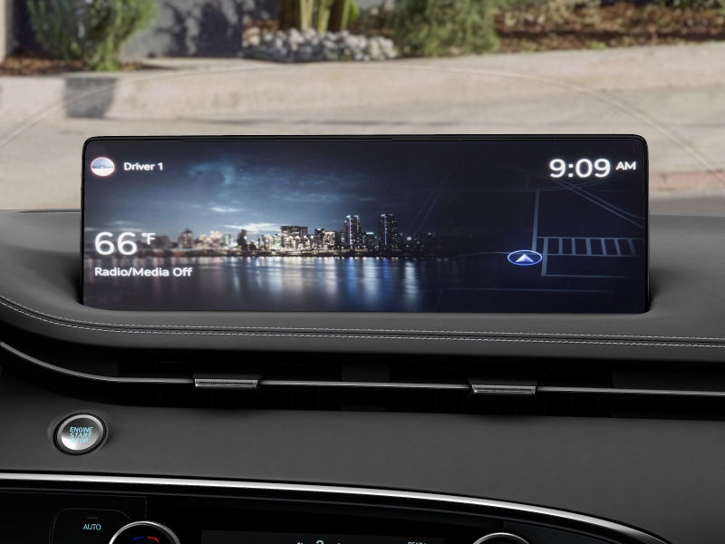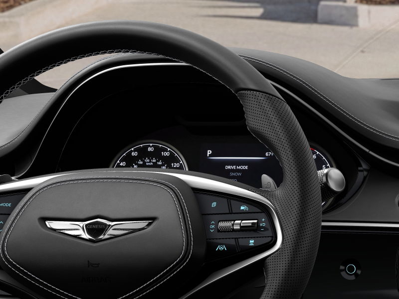 3.909 Axle Ratio, 4-Wheel Disc Brakes, 9 Speakers, ABS brakes, Adaptive suspension, Air Conditioning, Alloy wheels, AM/FM radio: SiriusXM, Android Auto & Apple CarPlay, Anti-whiplash front head restraints, Auto High-beam Headlights, Auto-dimming door mirrors, Auto-dimming Rear-View mirror, Automatic temperature control, Brake assist, Bumpers: body-color, Delay-off headlights, Driver door bin, Driver vanity mirror, Dual front impact airbags, Dual front side impact airbags, Electronic Stability Control, Emergency communication system: Genesis Connected Services, Exterior Parking Camera Rear, Four wheel independent suspension, Front anti-roll bar, Front Bucket Seats, Front Center Armrest w/Storage, Front dual zone A/C, Front reading lights, Fully automatic headlights, Garage door transmitter: HomeLink, Heated & Ventilated Front Bucket Seats, Heated door mirrors, Heated front seats, Heated steering wheel, Illuminated entry, Knee airbag, Leather Seating Surfaces w/Mesh Insert, Low tire pressure warning, Memory seat, Navigation System, Occupant sensing airbag, Outside temperature display, Overhead airbag, Overhead console, Panic alarm, Passenger door bin, Passenger vanity mirror, Power door mirrors, Power driver seat, Power Liftgate, Power moonroof, Power passenger seat, Power steering, Power windows, Radio: 14.5" Navigation System w/AM/FM/HD Radio, Rain sensing wipers, Rear anti-roll bar, Rear Parking Sensors, Rear reading lights, Rear seat center armrest, Rear window defroster, Rear window wiper, Remote keyless entry, Security system, Speed control, Speed-sensing steering, Speed-Sensitive Wipers, Split folding rear seat, Spoiler, Steering wheel memory, Steering wheel mounted audio controls, Tachometer, Telescoping steering wheel, Traction control, Trip computer, Turn signal indicator mirrors, Variably intermittent wipers, Ventilated front seats, and Wheels: 19" Dark Hyper Silver Sport Alloy.