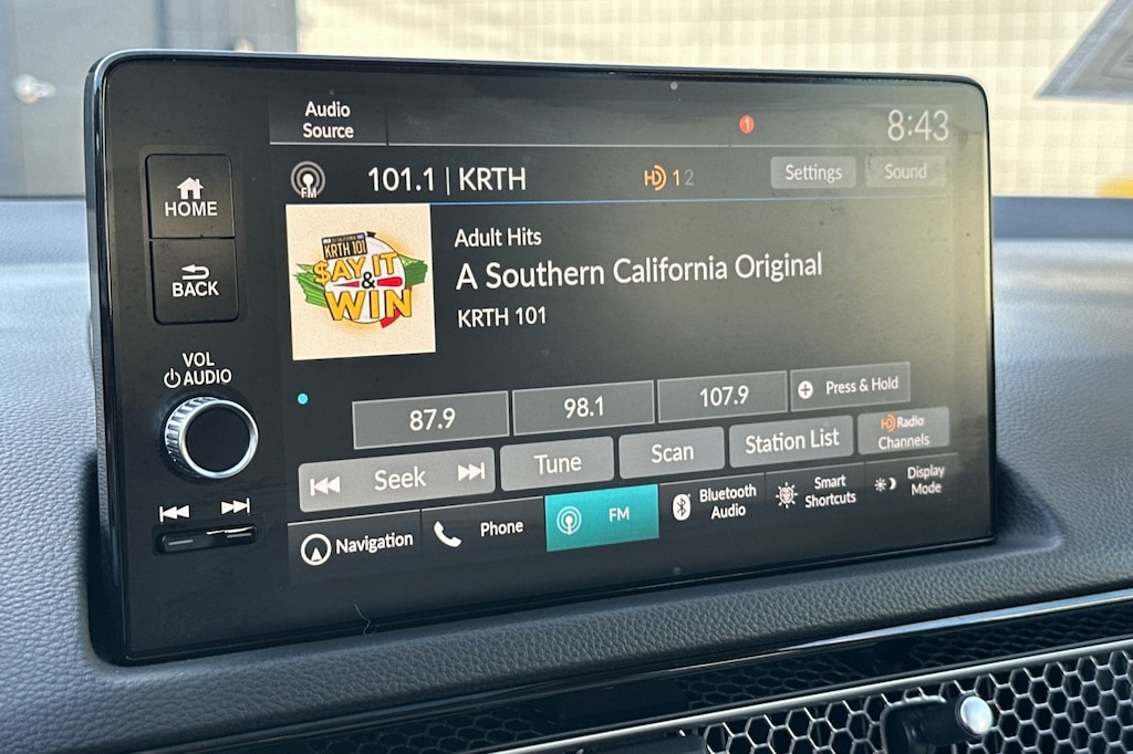 Apple CarPlay/Android Auto, Bose Premium Audio System, Heated door mirrors, Navigation system: Honda Satellite-Linked Navigation System. Apple CarPlay/Android Auto, Bose Premium Audio System, Heated door mirrors, Navigation system: Honda Satellite-Linked Navigation System, 12 Speakers, 4-Wheel Disc Brakes, ABS brakes, Adaptive Cruise Control: Adaptive Cruise Control (ACC) with Low-Speed Follow, Air Conditioning, Alloy wheels, AM/FM radio: SiriusXM, Auto High-beam Headlights, Auto-dimming Rear-View mirror, Automatic temperature control, Blind Spot Information (BSI) System warning, Brake assist, Bumpers: body-color, Compass, Delay-off headlights, Driver door bin, Driver vanity mirror, Dual front impact airbags, Dual front side impact airbags, Electronic Stability Control, Emergency communication system: HondaLink, Exterior Parking Camera Rear, Four wheel independent suspension, Front anti-roll bar, Front Bucket Seats, Front Center Armrest, Front dual zone A/C, Front fog lights, Front reading lights, Fully automatic headlights, Garage door transmitter: HomeLink, Heated Front Bucket Seats, Heated front seats, Illuminated entry, Knee airbag, Leather Shift Knob, Leather steering wheel, Leather-Trimmed Seating Surfaces, Low tire pressure warning, Occupant sensing airbag, Outside temperature display, Overhead airbag, Overhead console, Panic alarm, Passenger door bin, Passenger vanity mirror, Power door mirrors, Power driver seat, Power moonroof, Power passenger seat, Power steering, Power windows, Radio data system, Rain sensing wipers, Rear anti-roll bar, Rear seat center armrest, Rear side impact airbag, Rear window defroster, Remote keyless entry, Security system, Speed control, Speed-sensing steering, Split folding rear seat, Steering wheel mounted audio controls, Tachometer, Telescoping steering wheel, Tilt steering wheel, Traction control, Trip computer, Turn signal indicator mirrors, Variably intermittent wipers, and Wheels: 18" Alloy w/Gloss Shark Gray Inserts.