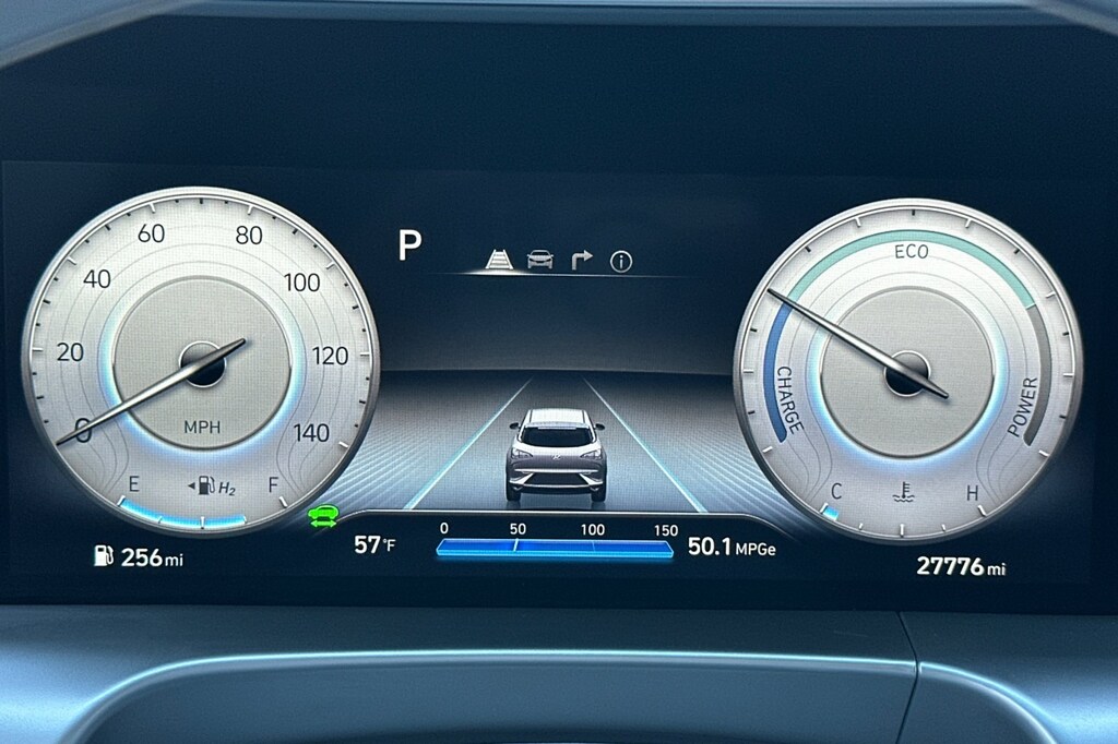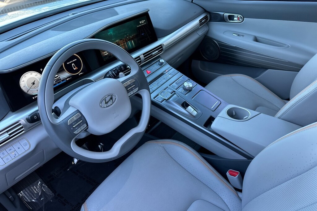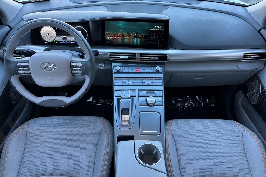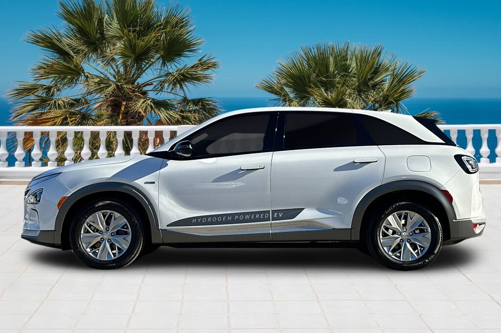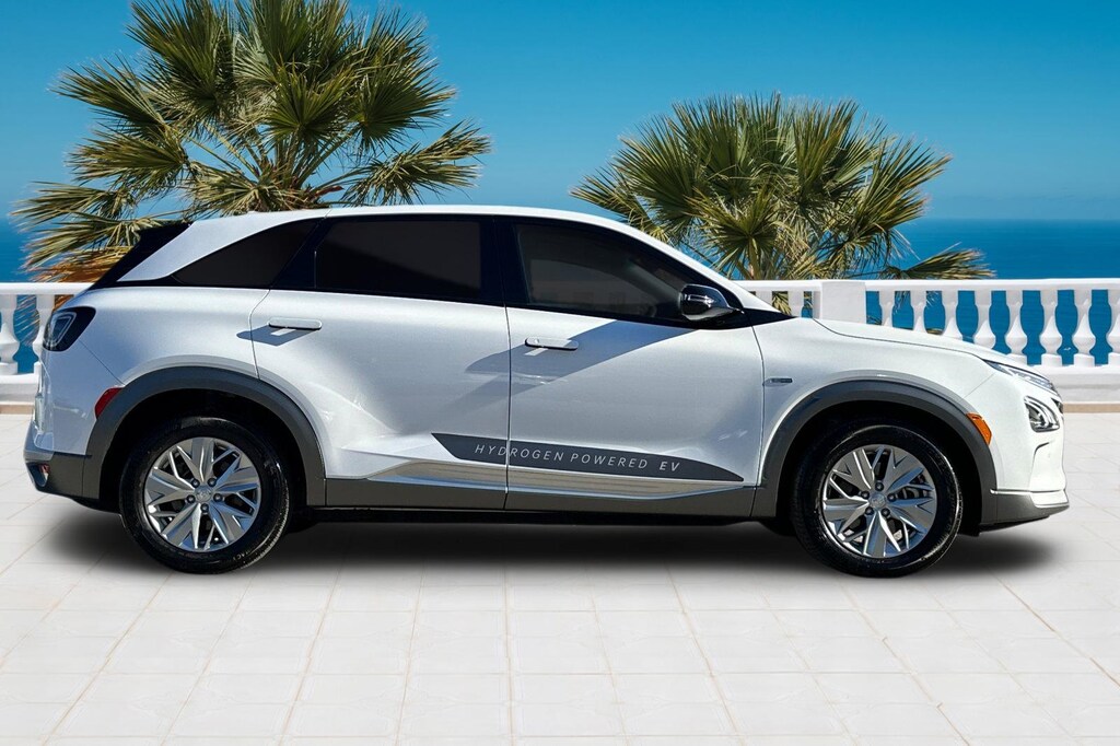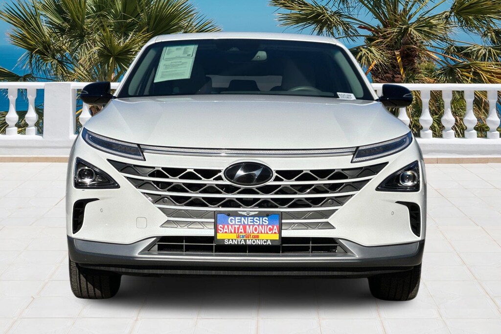 Nexo Blue HYDROGEN FUEL. Option Group 01, Nexo Blue HYDROGEN FUEL, 17" x 7J Alloy Wheels, 4-Wheel Disc Brakes, 6 Speakers, 7.981 Axle Ratio, ABS brakes, Air Conditioning, Alloy wheels, AM/FM radio: SiriusXM, Apple CarPlay & Android Auto, Auto High-beam Headlights, Auto-dimming Rear-View mirror, Automatic temperature control, Brake assist, Bumpers: body-color, Compass, Delay-off headlights, Driver door bin, Driver vanity mirror, Dual front impact airbags, Dual front side impact airbags, Electronic Stability Control, Emergency communication system: Blue Link Connected Car Service (3-year complimentary subscription), Four wheel independent suspension, Front anti-roll bar, Front Bucket Seats, Front Center Armrest, Front dual zone A/C, Front reading lights, Fully automatic headlights, Garage door transmitter: HomeLink, Heated door mirrors, Heated Front Bucket Seats, Heated front seats, Illuminated entry, Leather steering wheel, Leatherette Seat Trim, Low tire pressure warning, Navigation System, Occupant sensing airbag, Outside temperature display, Overhead airbag, Overhead console, Panic alarm, Passenger door bin, Passenger vanity mirror, Power door mirrors, Power driver seat, Power passenger seat, Power steering, Power windows, Radio: AM/FM/HD Radio/SiriusXM/MP3 Audio System, Rear anti-roll bar, Rear seat center armrest, Rear window defroster, Rear window wiper, Remote keyless entry, Security system, Speed control, Split folding rear seat, Spoiler, Steering wheel mounted audio controls, Telescoping steering wheel, Tilt steering wheel, Traction control, Trip computer, Turn signal indicator mirrors, and Variably intermittent wipers.