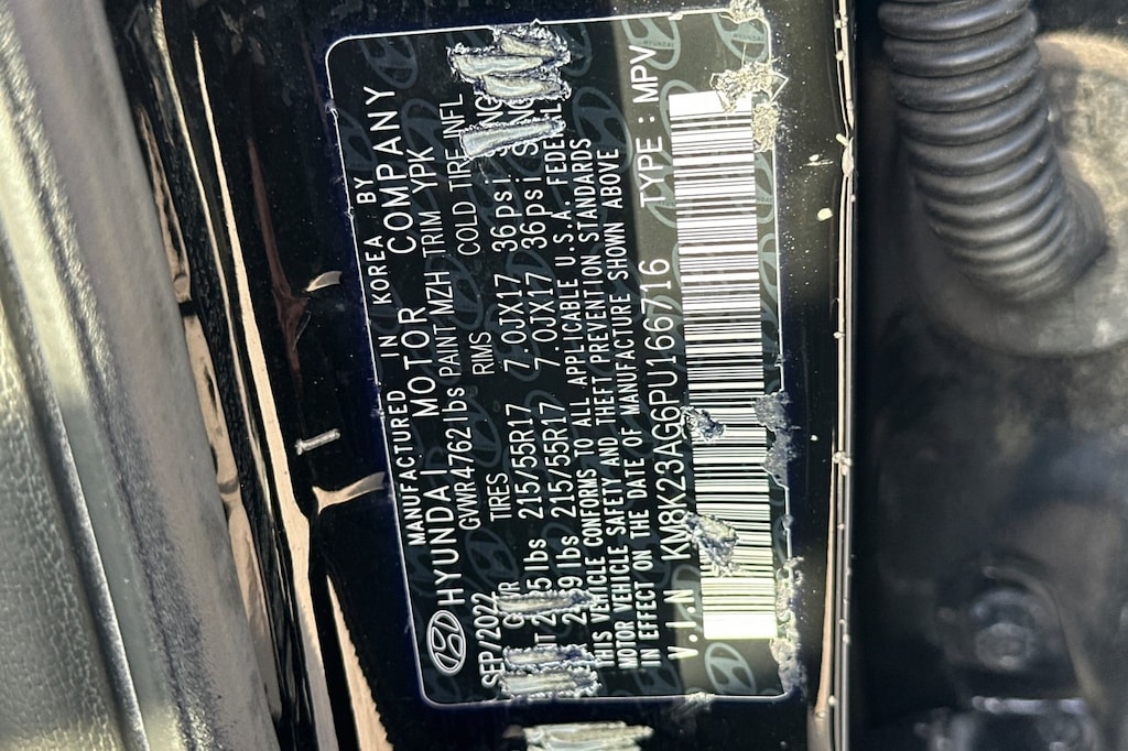 Cargo Package (Cargo Blocks, Cargo Tray, and First Aid Kit), Option Group 01, 17" Unique Alloy Wheels, 4-Wheel Disc Brakes, 6 Speakers, 7.981 Axle Ratio, ABS brakes, Air Conditioning, Alloy wheels, AM/FM radio: SiriusXM, Apple CarPlay & Android Auto, Automatic temperature control, Brake assist, Bumper Applique, Bumpers: body-color, Carpeted Floor Mats, Cloth Seat Trim, Delay-off headlights, Driver door bin, Driver vanity mirror, Dual front impact airbags, Dual front side impact airbags, Electronic Stability Control, Emergency communication system: Blue Link Connected Car Service (3-year complimentary subscription), Front anti-roll bar, Front Bucket Seats, Front Center Armrest w/Storage, Front wheel independent suspension, Fully automatic headlights, Heated door mirrors, Heated Front Bucket Seats, Heated front seats, Illuminated entry, Low tire pressure warning, Occupant sensing airbag, Outside temperature display, Overhead airbag, Overhead console, Panic alarm, Passenger door bin, Passenger vanity mirror, Power door mirrors, Power driver seat, Power steering, Power windows, Radio: AM/FM/HD Radio/SiriusXM Audio System, Rear seat center armrest, Rear window defroster, Rear window wiper, Remote keyless entry, Security system, Speed control, Speed-sensing steering, Split folding rear seat, Spoiler, Steering wheel mounted audio controls, Telescoping steering wheel, Tilt steering wheel, Traction control, Trip computer, Turn signal indicator mirrors, and Variably intermittent wipers.