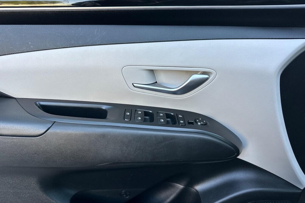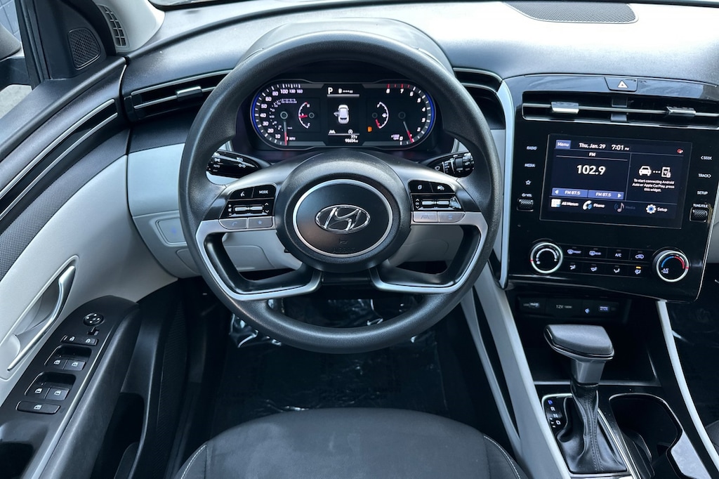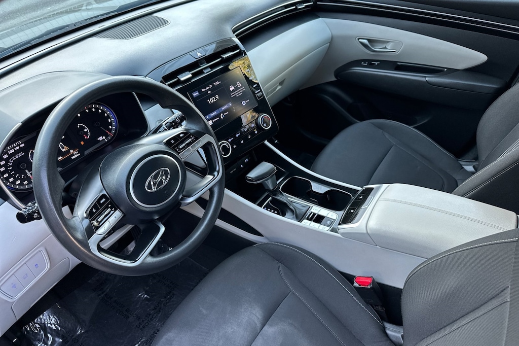 Option Group 01, 3.648 Axle Ratio, 4-Wheel Disc Brakes, 6 Speakers, ABS brakes, Air Conditioning, Alloy wheels, AM/FM radio: SiriusXM, Apple CarPlay & Android Auto, Auto High-beam Headlights, Brake assist, Bumpers: body-color, Delay-off headlights, Driver door bin, Driver vanity mirror, Dual front impact airbags, Dual front side impact airbags, Electronic Stability Control, Emergency communication system: Blue Link Connected Car Service (3-year complimentary subscription), Four wheel independent suspension, Front anti-roll bar, Front Bucket Seats, Front Center Armrest, Front reading lights, Fully automatic headlights, H-Tex Seat Trim, Heated door mirrors, Heated Front Bucket Seats, Heated front seats, Illuminated entry, Low tire pressure warning, Occupant sensing airbag, Outside temperature display, Overhead airbag, Overhead console, Panic alarm, Passenger door bin, Passenger vanity mirror, Power door mirrors, Power driver seat, Power Liftgate, Power steering, Power windows, Radio data system, Radio: AM/FM/HD/SiriusXM Audio System, Rear anti-roll bar, Rear seat center armrest, Rear window defroster, Rear window wiper, Remote keyless entry, Roof rack: rails only, Security system, Speed control, Split folding rear seat, Spoiler, Stain & Odor Resistant Cloth Seat Trim, Steering wheel mounted audio controls, Tachometer, Telescoping steering wheel, Tilt steering wheel, Traction control, Trip computer, Turn signal indicator mirrors, Variably intermittent wipers, and Wheels: 17" x 7.0J" Alloy.