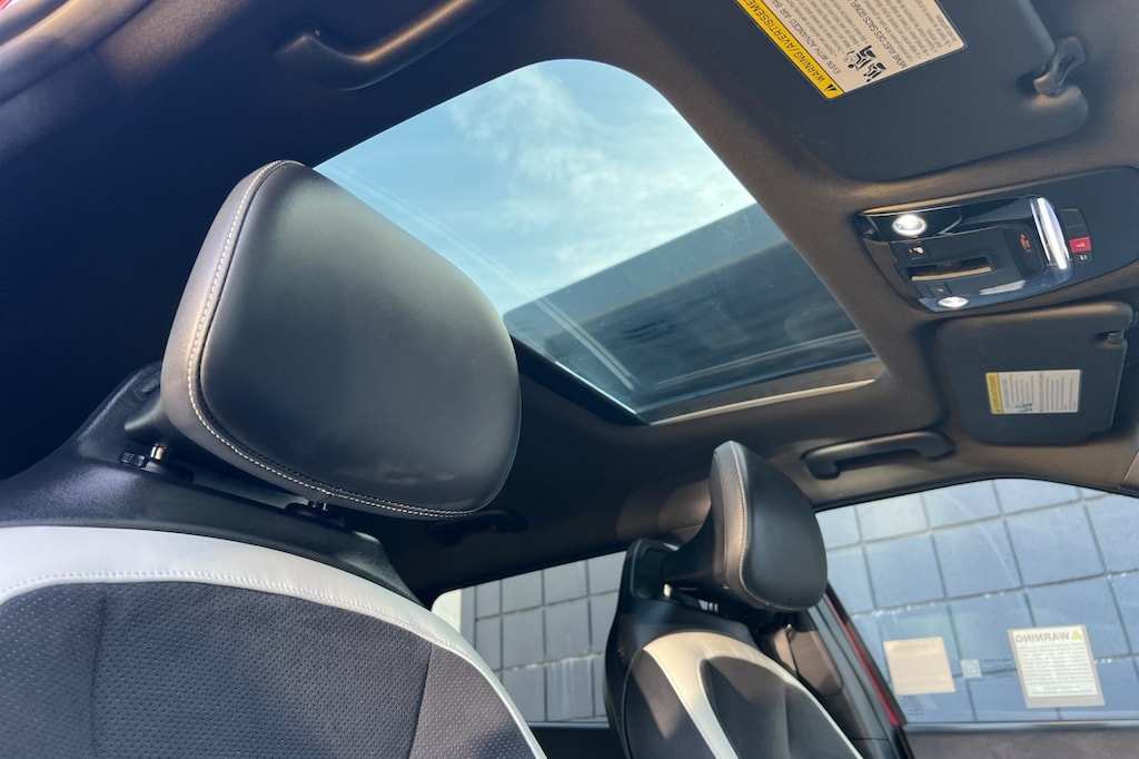Black Seat Color w/White Accents, GT-Line Suede Seat Package, Navigation system: AVN 5.0 Navigation System, Power Liftgate, Power moonroof, Suede Seat Trim w/Vegan Leather Accents. GT-Line Suede Seat Package (Black Seat Color w/White Accents and Suede Seat Trim w/Vegan Leather Accents), Navigation system: AVN 5.0 Navigation System, Power Liftgate, Power moonroof, 14 Speakers, 4-Wheel Disc Brakes, ABS brakes, Air Conditioning, Alloy wheels, AM/FM radio: SiriusXM, Apple CarPlay & Android Auto, Auto High-beam Headlights, Auto-dimming Rear-View mirror, Automatic temperature control, Axle Ratio: 10.650, Brake assist, Bumpers: body-color, Cargo Cover, Carpet Floor Mats, Delay-off headlights, Driver door bin, Driver vanity mirror, Dual front impact airbags, Dual front side impact airbags, Electronic Stability Control, Emergency communication system, Four wheel independent suspension, Front anti-roll bar, Front Bucket Seats, Front Center Armrest, Front dual zone A/C, Front reading lights, Fully automatic headlights, Garage door transmitter: HomeLink, Heads-Up Display, Heated & Ventilated Front Bucket Seats, Heated door mirrors, Heated front seats, Illuminated entry, Knee airbag, Low tire pressure warning, Memory seat, Occupant sensing airbag, Outside temperature display, Overhead airbag, Overhead console, Panic alarm, Passenger door bin, Passenger vanity mirror, Power door mirrors, Power driver seat, Power passenger seat, Power steering, Power windows, Radio: Meridian Premium Audio System, Rain sensing wipers, Rear anti-roll bar, Rear seat center armrest, Rear window defroster, Remote keyless entry, Security system, Smart Key w/ Push Button and Remote Start, Speed control, Speed-sensing steering, Split folding rear seat, Spoiler, Sport steering wheel, Steering wheel mounted audio controls, Telescoping steering wheel, Tilt steering wheel, Traction control, Trip computer, Turn signal indicator mirrors, Variably intermittent wipers, Vegan Leather Seat Trim, Ventilated front seats, and Wheels: 7.5J x 19" Black Painted Alloy.
