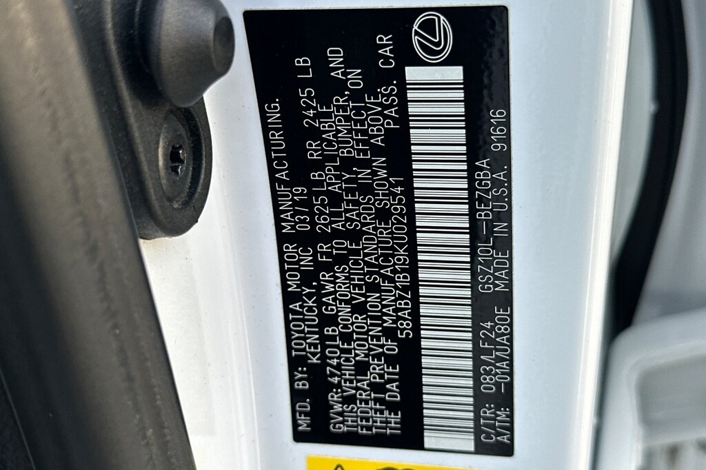 8" TFT LCD Instrument Panel Display, ABS brakes, Active Cruise Control, Active Noise Control, Alloy wheels, Compass, Driver Seat Memory, Electronic Stability Control, F SPORT Analog Clock, F SPORT Gauges w/Movable Display Ring, F SPORT Grille w/Dark Surround, F SPORT Package, F SPORT Pedals, F SPORT Shift Lever & Knob, Front & Rear Performance Dampers, Front dual zone A/C, Hadori Aluminum Interior Trim, Heated & Ventilated Seats, Heated door mirrors, Heated front seats, Heated Side Mirrors w/Memory & Reverse Tilt, Illuminated entry, Low tire pressure warning, Power moonroof, Power Tilt/Telescoping Steering Wheel w/Memory, Rain Sensing Wipers, Rear Spoiler, Remote keyless entry, Traction control. F SPORT Package (8" TFT LCD Instrument Panel Display, Active Noise Control, Driver Seat Memory, F SPORT Analog Clock, F SPORT Gauges w/Movable Display Ring, F SPORT Grille w/Dark Surround, F SPORT Pedals, F SPORT Shift Lever & Knob, Front & Rear Performance Dampers, Hadori Aluminum Interior Trim, Heated & Ventilated Seats, Heated Side Mirrors w/Memory & Reverse Tilt, Power Tilt/Telescoping Steering Wheel w/Memory, Rain Sensing Wipers, and Rear Spoiler), ABS brakes, Active Cruise Control, Alloy wheels, Compass, Electronic Stability Control, Front dual zone A/C, Heated door mirrors, Heated front seats, Illuminated entry, Low tire pressure warning, Power moonroof, Remote keyless entry, Traction control, 10 Speakers, 10-Way Power Adjustable F SPORT Front Seats, 4-Wheel Disc Brakes, Air Conditioning, AM/FM radio: SiriusXM, Auto High-beam Headlights, Auto tilt-away steering wheel, Auto-dimming door mirrors, Automatic temperature control, Brake assist, Bumpers: body-color, CD player, Delay-off headlights, Driver door bin, Driver vanity mirror, Dual front impact airbags, Dual front side impact airbags, Emergency communication system: Lexus Enform w/Safety Connect, Exterior Parking Camera Rear, F SPORT NuLuxe Seat Trim, Four wheel independent suspension, Front anti-roll bar, Front Bucket Seats, Front Center Armrest, Front reading lights, Fully automatic headlights, Garage door transmitter: HomeLink, Knee airbag, Leather Shift Knob, Leather steering wheel, Memory seat, Occupant sensing airbag, Outside temperature display, Overhead airbag, Overhead console, Panic alarm, Passenger door bin, Passenger vanity mirror, Power door mirrors, Power driver seat, Power passenger seat, Power steering, Power windows, Radio data system, Radio: Lexus Premium Sound System w/10 Speakers, Rain sensing wipers, Rear anti-roll bar, Rear reading lights, Rear seat center armrest, Rear side impact airbag, Rear window defroster, Security system, Speed control, Speed-sensing steering, Spoiler, Sport steering wheel, Steering wheel memory, Steering wheel mounted audio controls, Tachometer, Telescoping steering wheel, Tilt steering wheel, Trip computer, Turn signal indicator mirrors, Variably intermittent wipers, Ventilated front seats, and Wheels: 19" x 8J Split Spoke Aluminum Alloy.