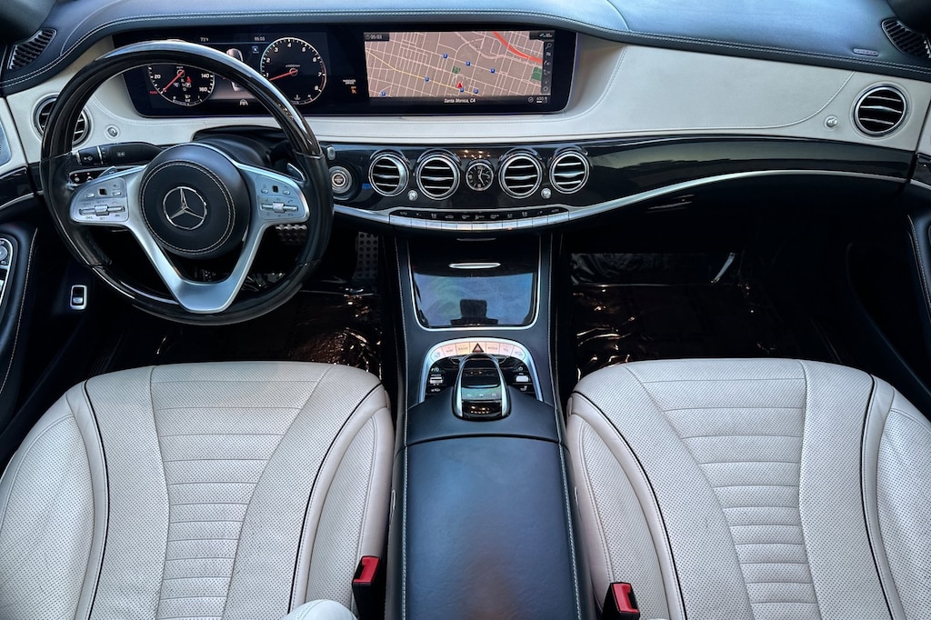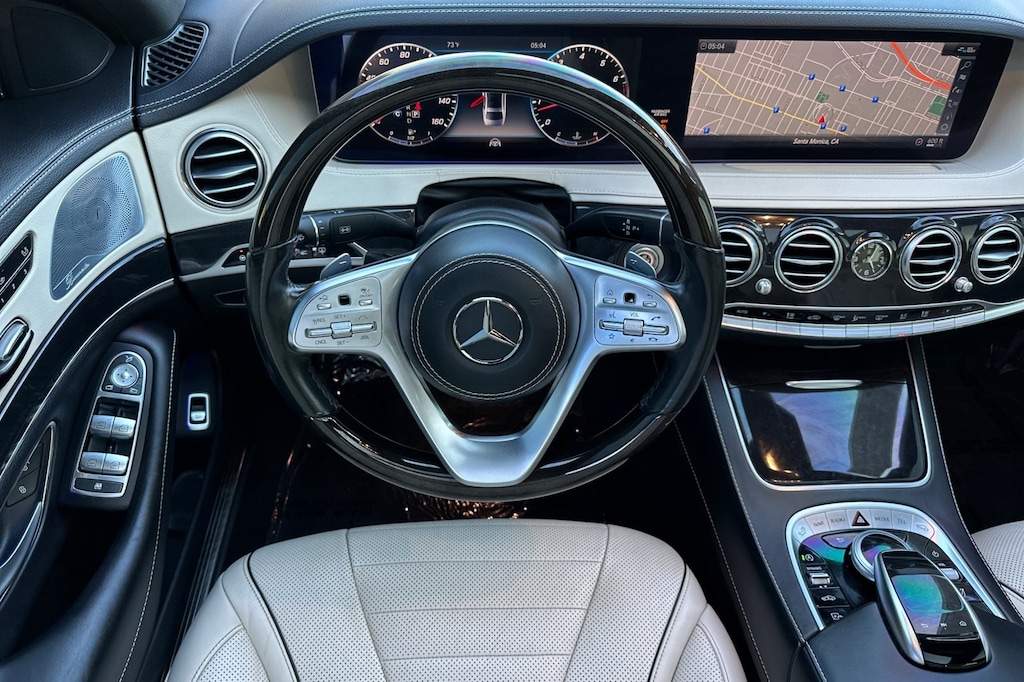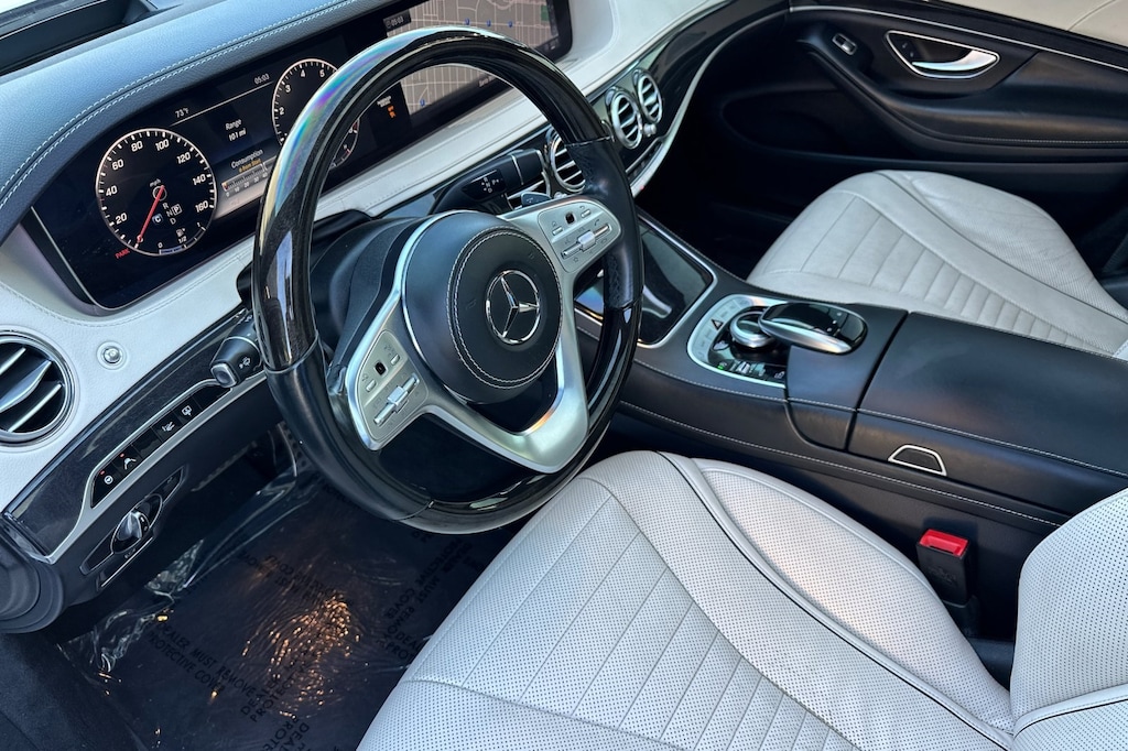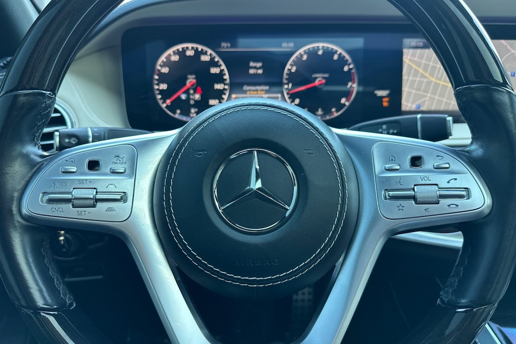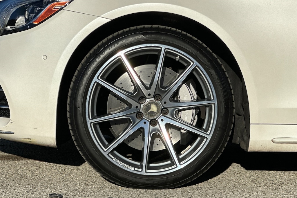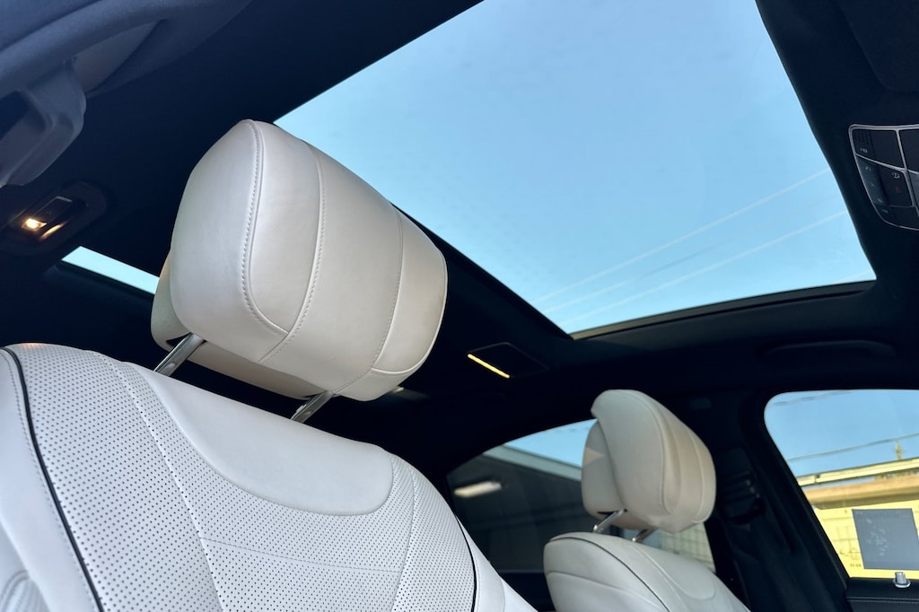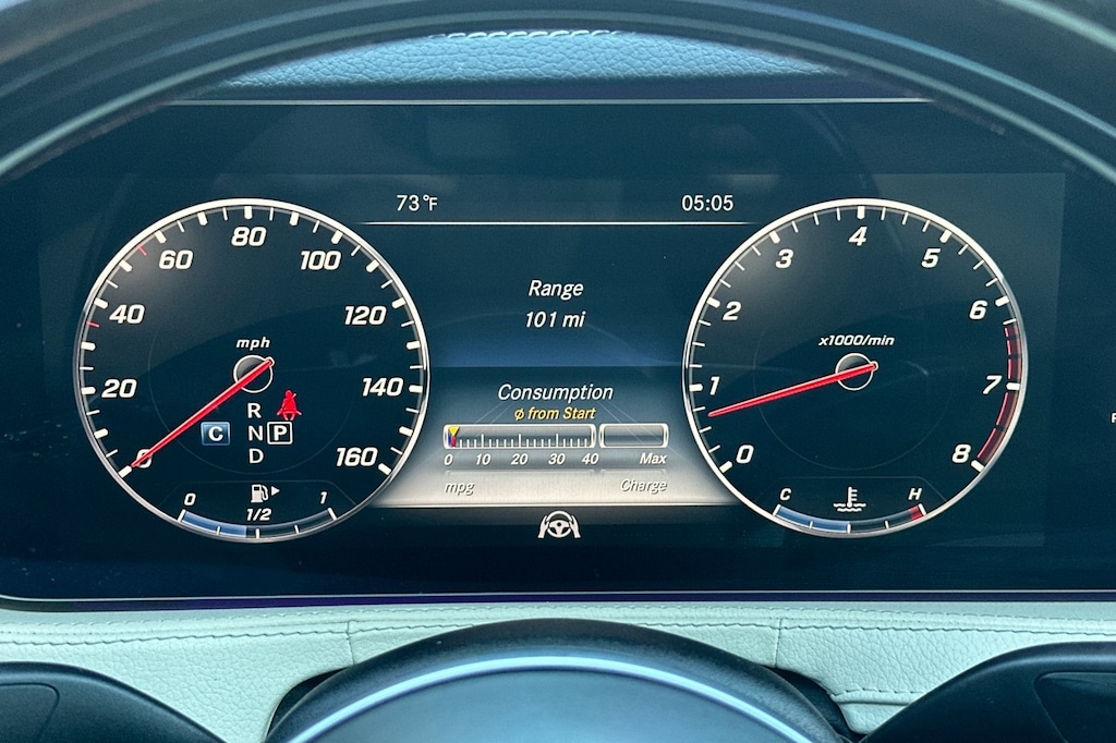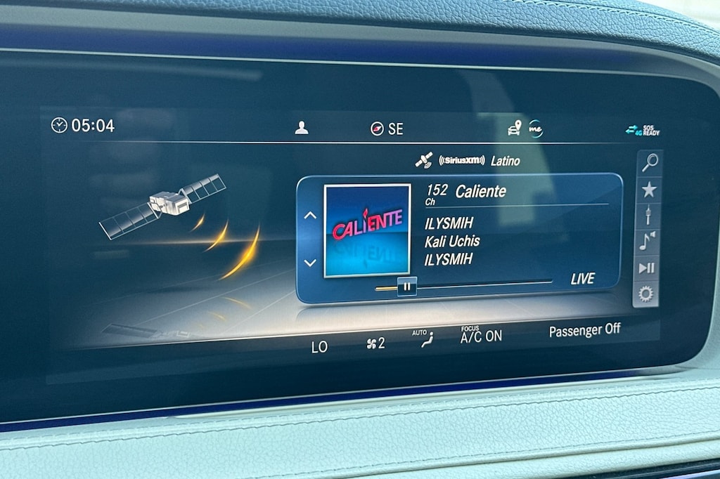 Apple CarPlay®, Apple CarPlay®/Android Auto®, Navigation system: COMAND®, Premium audio system: COMAND®. AMG® Line Exterior (AMG® Line Exterior (772)), Driver Assistance Package (Active Distance Assist DISTRONIC®, Active Lane Change Assist, Active Steering Assist, Automatic Speed Takeover, Extended Restart by Stop & Go, Route Based Speed Adaptation, and Speed Limit Assist), Driver Assistance Package (23P), KEYLESS GO® Comfort Package, Premium Package (Active Parking Assist, Front Variable Heated Seats, HANDS-FREE ACCESS, Heated & Ventilated Front Seats, KEYLESS GO®, Multicontour Front Seats w/Massage Feature, Power Rear-Window Sunshades, and Surround View Camera), Sport Package Code, Apple CarPlay®, Apple CarPlay®/Android Auto®, Navigation system: COMAND®, Premium audio system: COMAND®, 13 Speakers, 19" Multi-Spoke Wheels, 4-Wheel Disc Brakes, ABS brakes, Adaptive suspension, Air Conditioning, Alloy wheels, AM/FM radio: SiriusXM, Android Auto®, Auto High-beam Headlights, Auto tilt-away steering wheel, Auto-dimming door mirrors, Auto-dimming Rear-View mirror, Auto-leveling suspension, Automatic temperature control, Brake assist, Bumpers: body-color, Burmester® Surround Sound System, Child-Seat-Sensing Airbag, Compass, Delay-off headlights, Door auto-latch, Driver door bin, Driver vanity mirror, Dual front impact airbags, Dual front side impact airbags, Electronic Stability Control, Emergency communication system: eCall Emergency System, Exterior Parking Camera Rear, Four wheel independent suspension, Front anti-roll bar, Front Bucket Seats, Front Center Armrest, Front dual zone A/C, Front reading lights, Garage door transmitter: Homelink, Genuine wood console insert, Genuine wood door panel insert, Head restraints memory, Heated door mirrors, Heated Front Seats, Heated front seats, HVAC memory, Illuminated entry, Knee airbag, Low tire pressure warning, Memory seat, Occupant sensing airbag, Outside temperature display, Overhead airbag, Overhead console, Panic alarm, Passenger door bin, Passenger vanity mirror, Perforated Nappa Leather Upholstery, Power adjustable front head restraints, Power adjustable rear head restraints, Power door mirrors, Power driver seat, Power Front Seats w/3-Position Memory, Power moonroof: Panorama, Power passenger seat, Power steering, Power windows, Pre-Wiring for CD Player, Radio data system, Radio: COMAND® System w/Navigation, Rain sensing wipers, Rear anti-roll bar, Rear fog lights, Rear reading lights, Rear seat center armrest, Rear side impact airbag, Rear Window Blind, Rear window defroster, Remote keyless entry, Security system, SiriusXM Satellite Radio, Smartphone Integration, Speed control, Speed-sensing steering, Steering wheel memory, Steering wheel mounted audio controls, Tachometer, Telescoping steering wheel, Tilt steering wheel, Traction control, Trip computer, Turn signal indicator mirrors, Variably intermittent wipers, and Weather band radio.