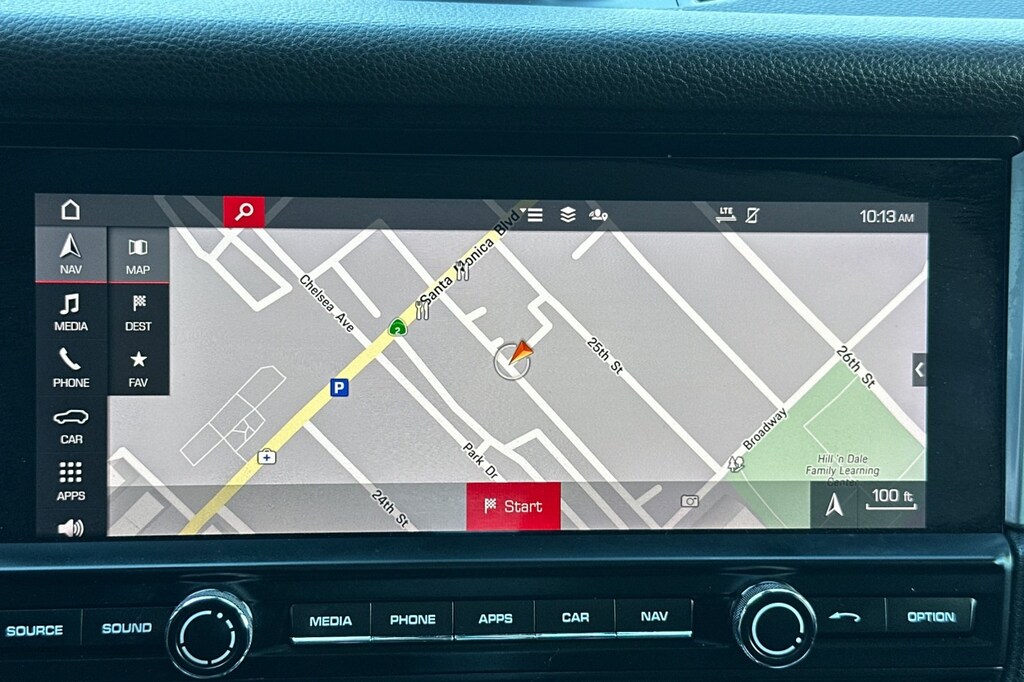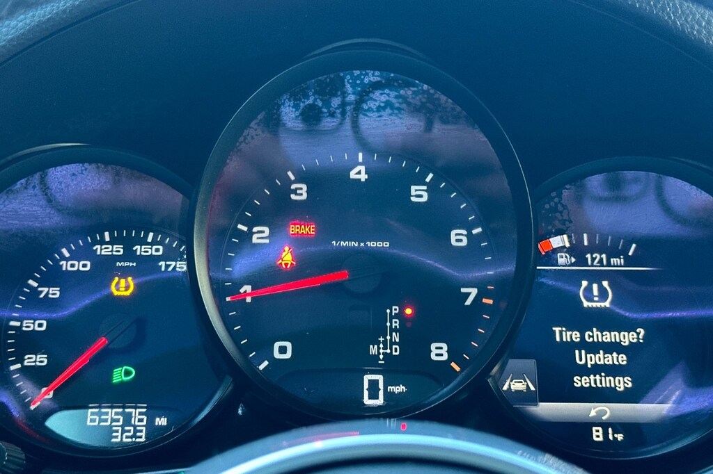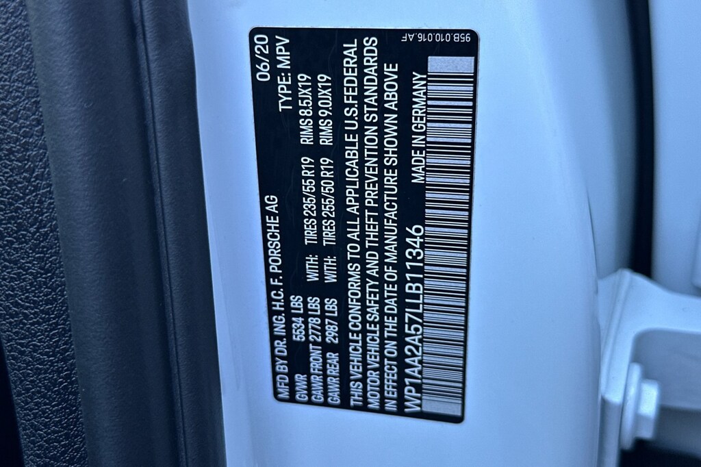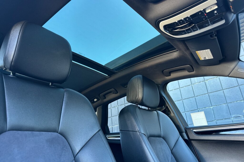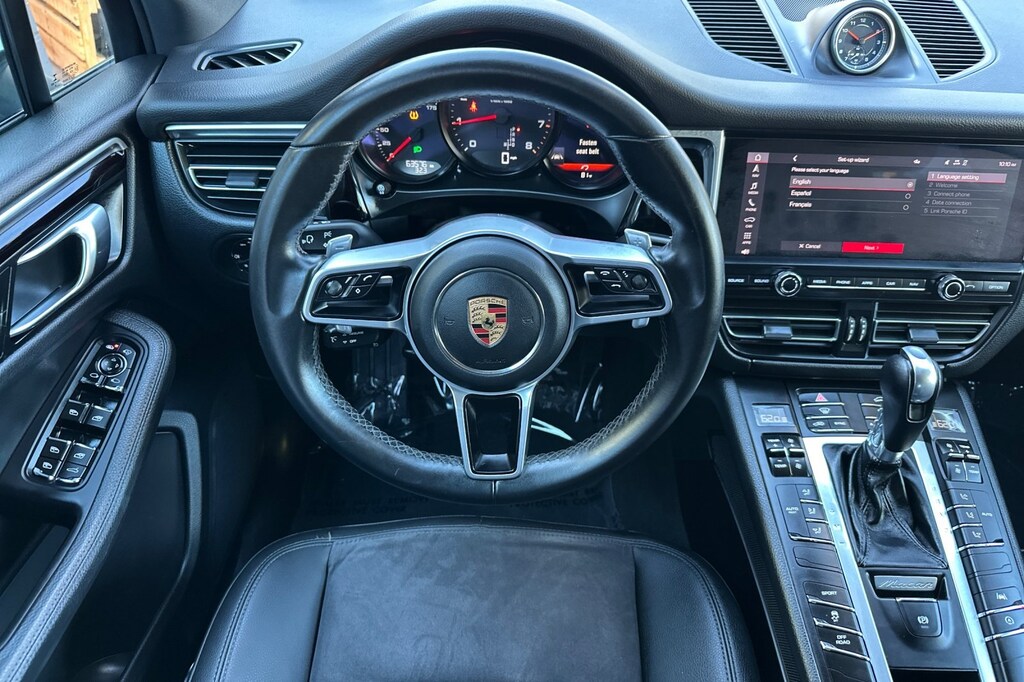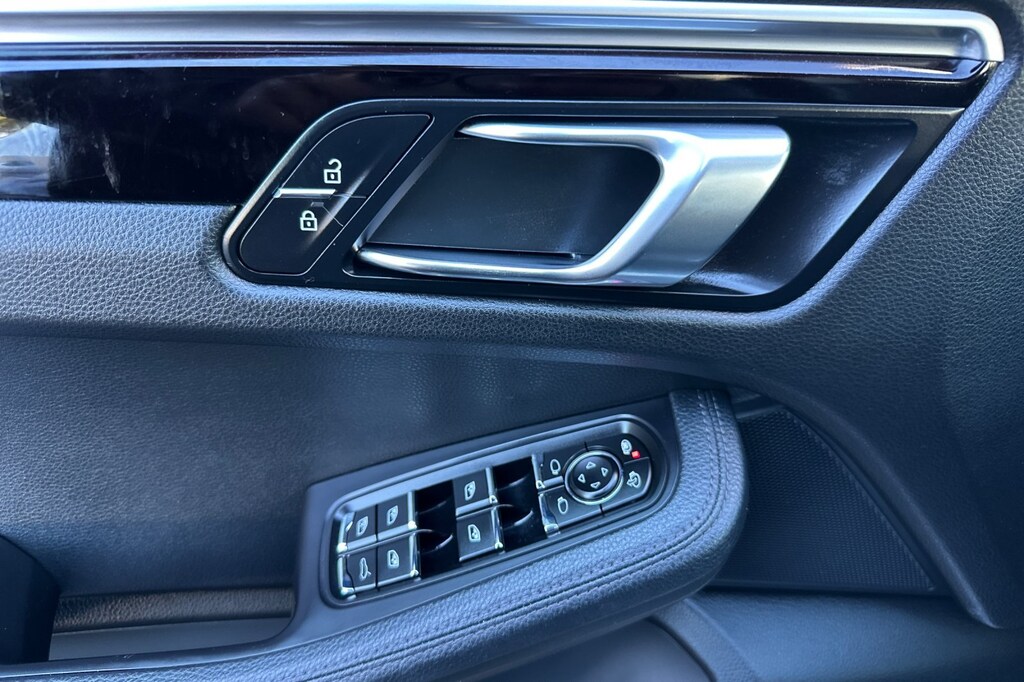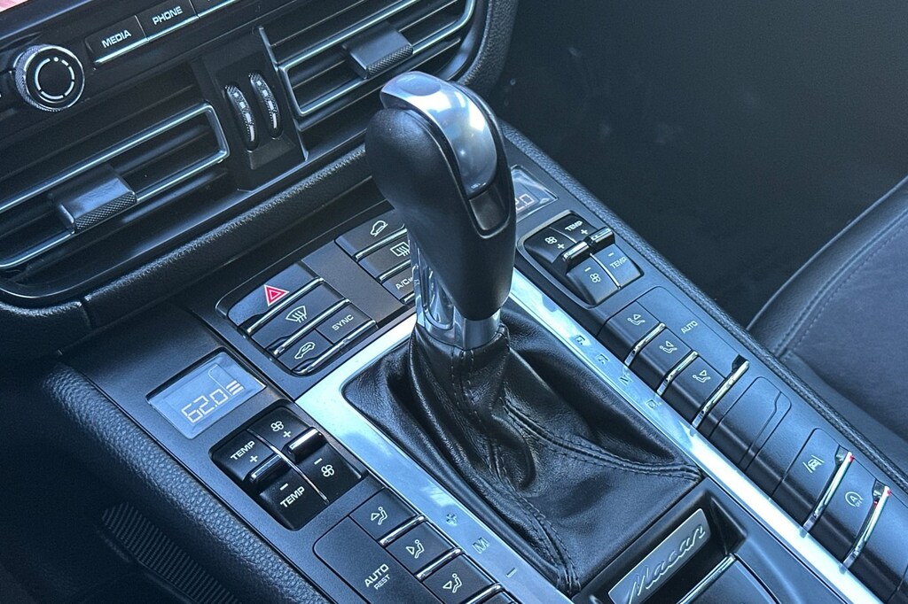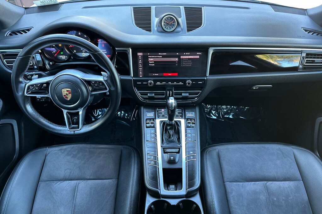 Navigation System, Power Liftgate, Spoiler. Navigation System, Power Liftgate, Spoiler, 10 Speakers, 4-Wheel Disc Brakes, 8-Way Power Seats, ABS brakes, Air Conditioning, Alloy wheels, AM/FM radio: SiriusXM, Automatic temperature control, Axle Ratio: 4.13, Brake assist, Bumpers: body-color, Delay-off headlights, Driver door bin, Driver vanity mirror, Dual front impact airbags, Dual front side impact airbags, Electronic Stability Control, Exterior Parking Camera Rear, Four wheel independent suspension, Front anti-roll bar, Front Bucket Seats, Front Center Armrest, Front dual zone A/C, Front fog lights, Front reading lights, Fully automatic headlights, Garage door transmitter: HomeLink, Heated door mirrors, Illuminated entry, Leather Shift Knob, Low tire pressure warning, Occupant sensing airbag, Outside temperature display, Overhead airbag, Overhead console, Panic alarm, Partial Leather Seat Trim w/Alcantara, Passenger door bin, Passenger vanity mirror, Porsche Communication Management, Power door mirrors, Power driver seat, Power passenger seat, Power steering, Power windows, Radio data system, Rain sensing wipers, Rear air conditioning, Rear anti-roll bar, Rear reading lights, Rear seat center armrest, Rear side impact airbag, Rear window defroster, Rear window wiper, Remote keyless entry, Security system, Speed control, Speed-sensing steering, Split folding rear seat, Sport steering wheel, Steering wheel mounted audio controls, Tachometer, Telescoping steering wheel, Tilt steering wheel, Traction control, Trip computer, Turn signal indicator mirrors, Variably intermittent wipers, and Wheels: 18" Macan.