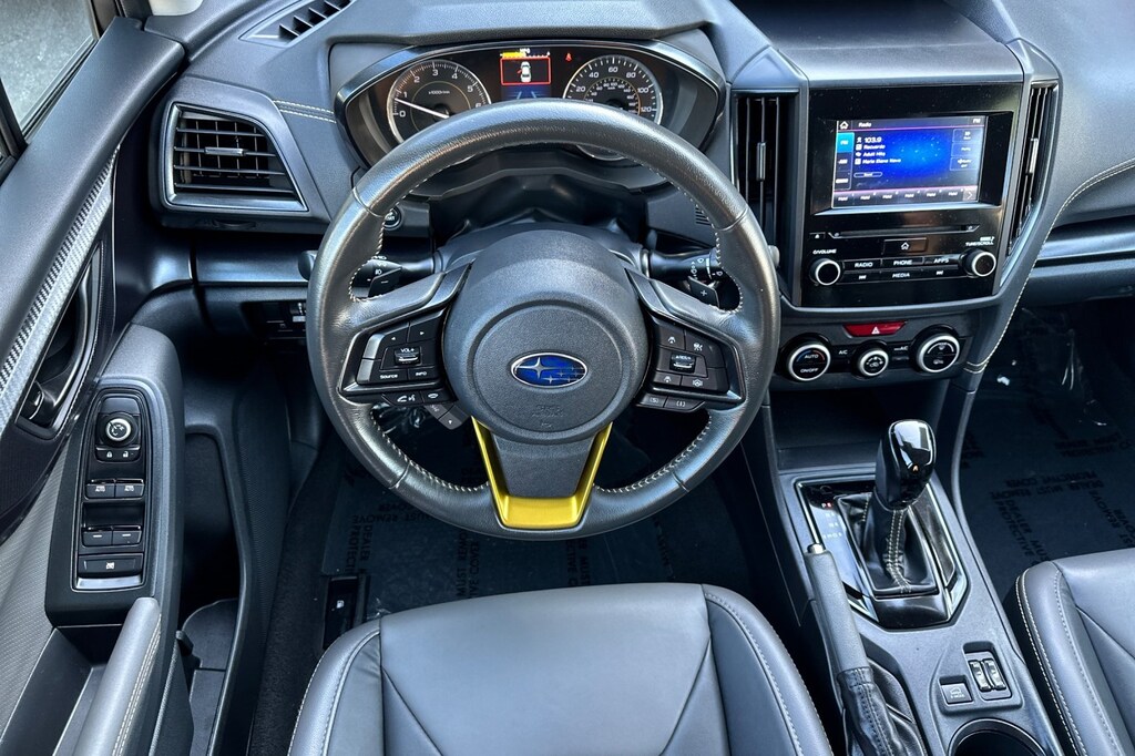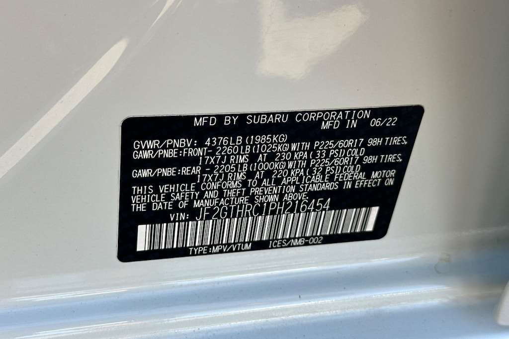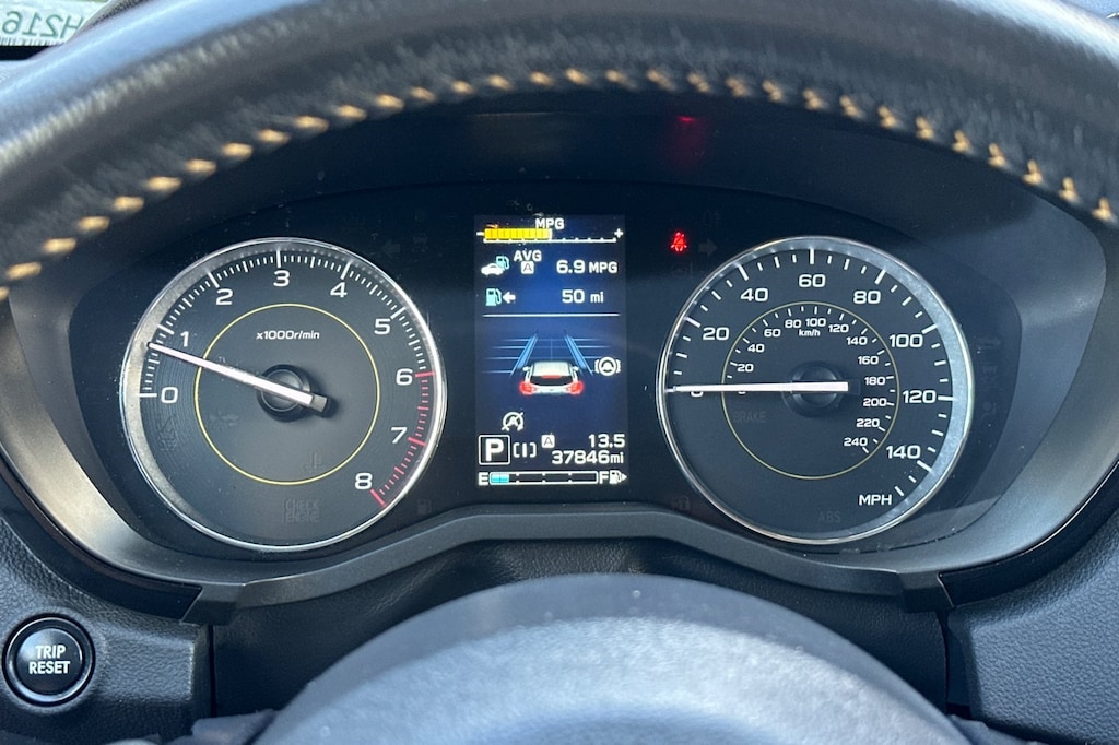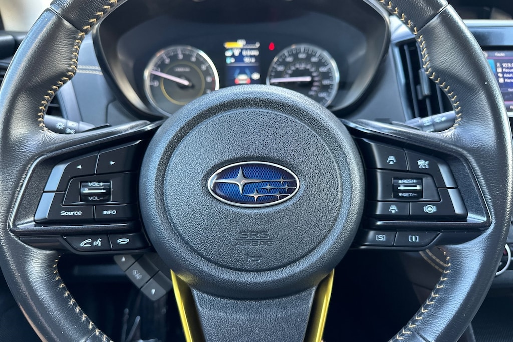 Brake assist, Electronic Stability Control, Exterior Parking Camera Rear, Radio: Subaru STARLINK 6.5" Multimedia Plus System, Spoiler, Standard Model, STARLINK/Apple CarPlay/Android Auto. Standard Model, Brake assist, Electronic Stability Control, Exterior Parking Camera Rear, Radio: Subaru STARLINK 6.5" Multimedia Plus System, Spoiler, STARLINK/Apple CarPlay/Android Auto, 3.70 Axle Ratio, 4-Wheel Disc Brakes, 6 Speakers, ABS brakes, Air Conditioning, All-Weather Floor Liners, Alloy wheels, AM/FM radio: SiriusXM, Anti-whiplash front head restraints, Auto-Dimming Exterior Mirror w/Approach Light, Auto-Dimming Mirror w/Compass & HomeLink, Automatic temperature control, Bumpers: body-color, CD player, Driver door bin, Driver vanity mirror, Dual front impact airbags, Dual front side impact airbags, Emergency communication system: STARLINK Safety and Security (Subscription Required), Four wheel independent suspension, Front anti-roll bar, Front Bucket Seats, Front Center Armrest, Front fog lights, Front reading lights, Fully automatic headlights, Heated door mirrors, Heated Front Bucket Seats, Heated front seats, Illuminated entry, Knee airbag, Leather Shift Knob, Low tire pressure warning, Map & Dome Lights LED Upgrade, Occupant sensing airbag, Outside temperature display, Overhead airbag, Overhead console, Panic alarm, Passenger door bin, Passenger vanity mirror, Power door mirrors, Power steering, Power windows, Radio data system, Rear anti-roll bar, Rear Bumper Cover, Rear Seatback Protector, Rear window defroster, Rear window wiper, Remote keyless entry, Security system, Speed control, Speed-sensing steering, Splash Guards, Split folding rear seat, StarTex Upholstery, Steering wheel mounted audio controls, Tachometer, Telescoping steering wheel, Tilt steering wheel, Traction control, Trip computer, Turn signal indicator mirrors, Variably intermittent wipers, and Wheels: 17" x 7.0J Alum Alloy Dark Gray Met Finish.