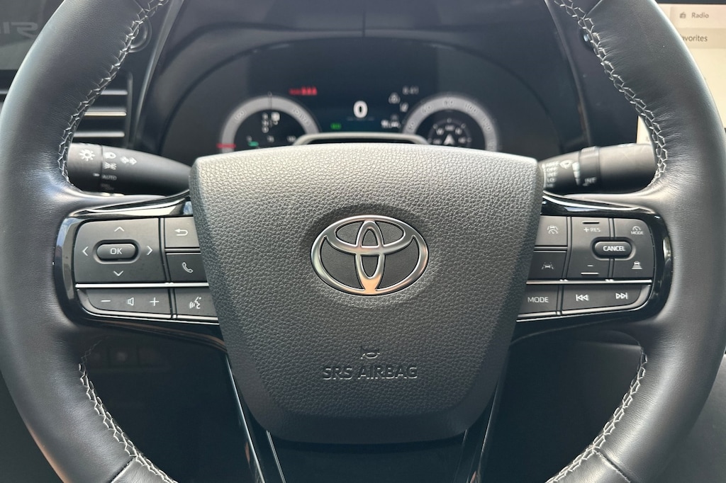 14 Speakers, 4-Wheel Disc Brakes, ABS brakes, Air Conditioning, Alloy wheels, AM/FM radio: SiriusXM, Auto High-beam Headlights, Auto-dimming Rear-View mirror, Automatic temperature control, Brake assist, Bumpers: body-color, Delay-off headlights, Driver door bin, Driver vanity mirror, Dual front impact airbags, Dual front side impact airbags, Electronic Stability Control, Emergency communication system: Safety Connect (1-year trial), Exterior Parking Camera Rear, Front anti-roll bar, Front Bucket Seats, Front Center Armrest, Front dual zone A/C, Front reading lights, Front wheel independent suspension, Fully automatic headlights, Garage door transmitter: HomeLink, Heated door mirrors, Heated front seats, Illuminated entry, Knee airbag, Leather steering wheel, Low tire pressure warning, Navigation system: Drive Connect Cloud Navigation (1-year trial subscription), Occupant sensing airbag, Outside temperature display, Overhead airbag, Overhead console, Panic alarm, Passenger door bin, Passenger vanity mirror, Power door mirrors, Power driver seat, Power passenger seat, Power steering, Power windows, Radio data system, Radio: 12.3" Toyota Audio Multimedia, Rain sensing wipers, Rear anti-roll bar, Rear seat center armrest, Rear window defroster, Remote keyless entry, Speed control, Speed-Sensitive Wipers, Steering wheel mounted audio controls, Telescoping steering wheel, Tilt steering wheel, Traction control, Trip computer, Turn signal indicator mirrors, and Variably intermittent wipers.