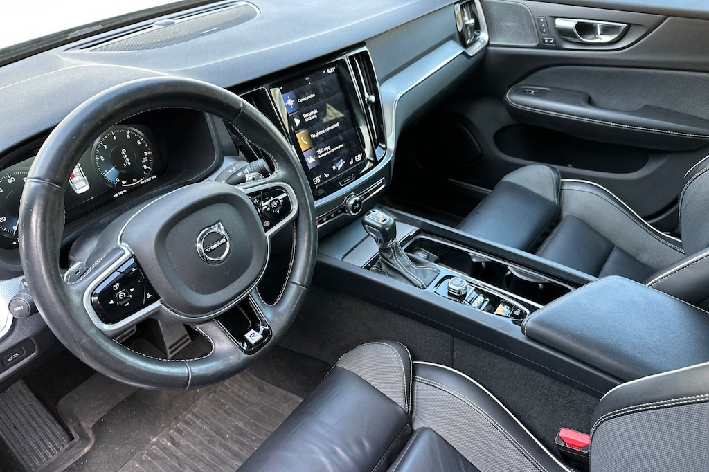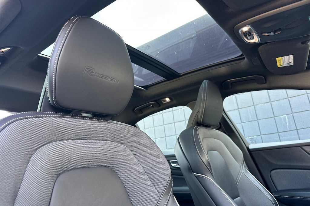 Heated Front Seats & Heated Steering Wheel (Heated Front Seats and Heated Steering Wheel), 13 Speakers, 4-Wheel Disc Brakes, ABS brakes, Air Conditioning, Alloy wheels, AM/FM radio: SiriusXM, Anti-whiplash front head restraints, Apple CarPlay/Android Auto, Auto High-beam Headlights, Auto-dimming door mirrors, Auto-dimming Rear-View mirror, Automatic temperature control, Brake assist, Bumpers: body-color, Compass, Delay-off headlights, Driver door bin, Driver vanity mirror, Dual front impact airbags, Dual front side impact airbags, Electronic Stability Control, Emergency communication system: On-Call Plus, Exterior Parking Camera Rear, Four wheel independent suspension, Front anti-roll bar, Front Bucket Seats, Front Center Armrest, Front dual zone A/C, Front fog lights, Front reading lights, Front Sport Bucket Seats, Fully automatic headlights, Garage door transmitter: HomeLink, harman/kardon® Speakers, Heated door mirrors, Illuminated entry, Knee airbag, Leather Shift Knob, Low tire pressure warning, Memory seat, Navigation System, Occupant sensing airbag, Outside temperature display, Overhead airbag, Panic alarm, Passenger door bin, Passenger vanity mirror, Power door mirrors, Power driver seat, Power moonroof, Power passenger seat, Power steering, Power windows, Premium audio system: Sensus Connect, R-Design Nappa Leather Seating Surfaces, Radio data system, Radio: harman/kardon Premium Sound, Rain sensing wipers, Rear anti-roll bar, Rear fog lights, Rear reading lights, Rear seat center armrest, Rear window defroster, Remote keyless entry, Security system, Sensus Navigation, Speed control, Split folding rear seat, Steering wheel mounted audio controls, Tachometer, Telescoping steering wheel, Tilt steering wheel, Traction control, Trip computer, Turn signal indicator mirrors, Variably intermittent wipers, Wheels: 18" Unique R-Design, and Wheels: 19" R-Design.