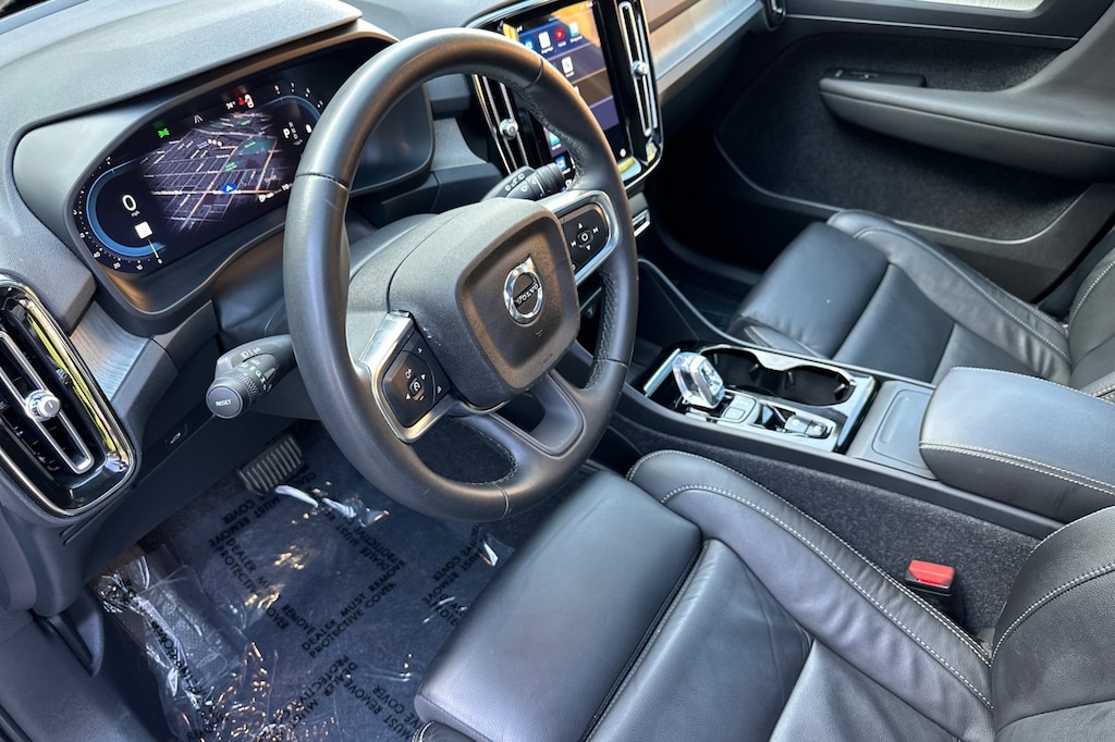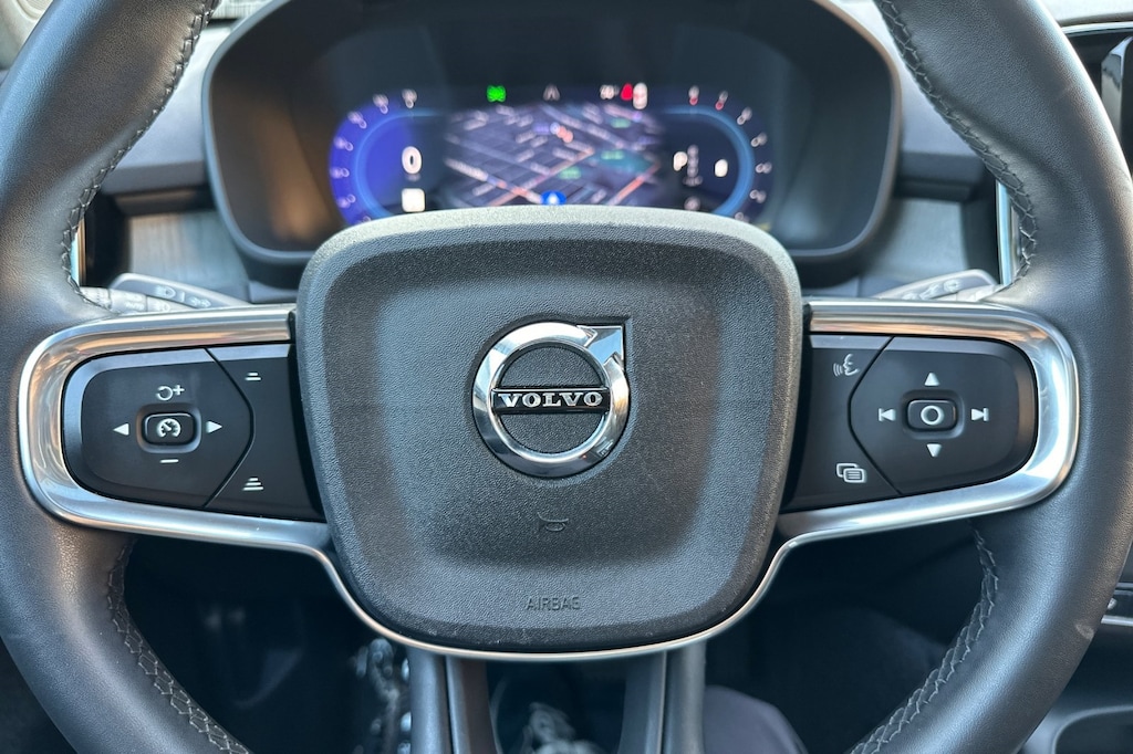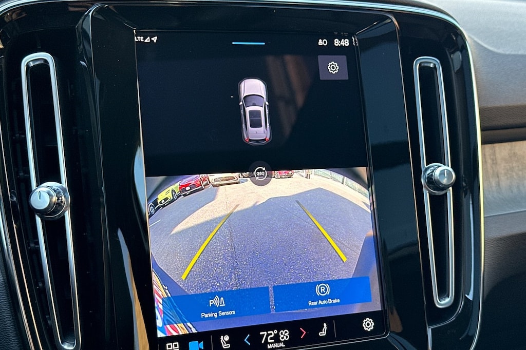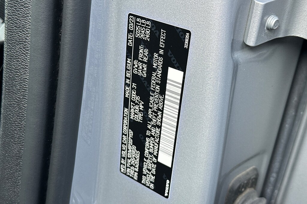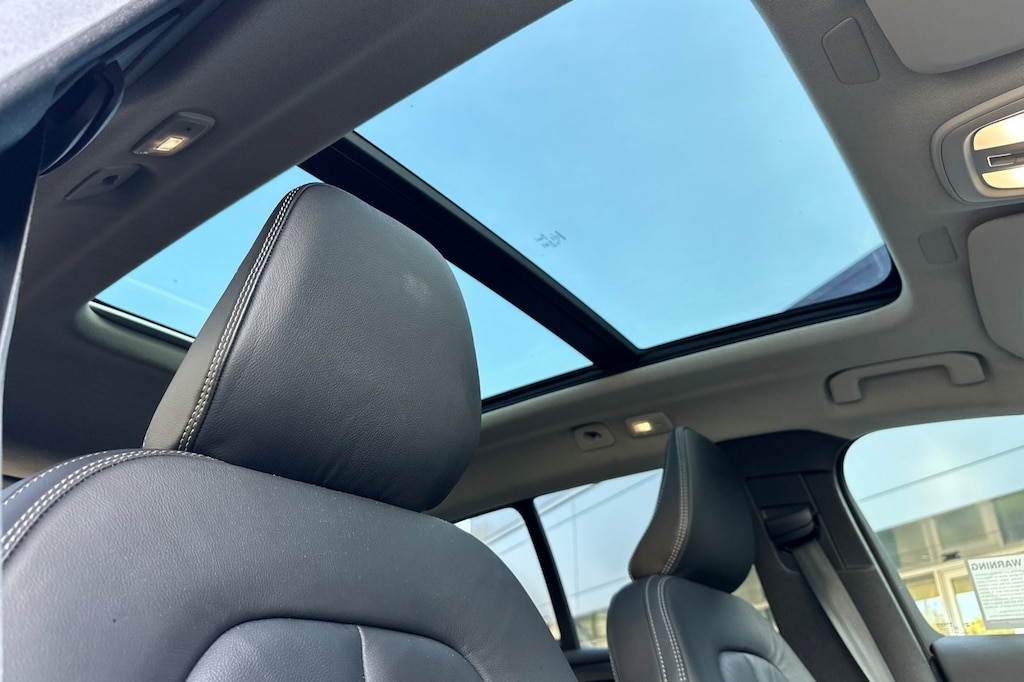 Apple CarPlay, Brake assist, Electronic Stability Control, Exterior Parking Camera Rear, Heated front seats, Internet access capable: Digital Services Package w/ 4 Year Subscription, Navigation System, Power moonroof, Spoiler. Internet access capable: Digital Services Package w/ 4 Year Subscription, Apple CarPlay, Brake assist, Electronic Stability Control, Exterior Parking Camera Rear, Heated front seats, Navigation System, Power moonroof, Spoiler, 4-Wheel Disc Brakes, 8 Speakers, ABS brakes, Air Conditioning, Alloy wheels, AM/FM Radio, AM/FM radio: SiriusXM, Auto High-beam Headlights, Auto-dimming door mirrors, Auto-dimming Rear-View mirror, Automatic temperature control, Bumpers: body-color, Connect Suede Textile/Microtech Seating Surfaces, Delay-off headlights, Driver door bin, Driver vanity mirror, Dual front impact airbags, Dual front side impact airbags, Emergency communication system: Volvo Cars App w/4 Year Subscription, Four wheel independent suspension, Front anti-roll bar, Front Bucket Seats, Front Center Armrest, Front dual zone A/C, Front fog lights, Front reading lights, Fully automatic headlights, Garage door transmitter: HomeLink, Heated door mirrors, Illuminated entry, Knee airbag, Low tire pressure warning, Memory seat, Occupant sensing airbag, Outside temperature display, Overhead airbag, Overhead console, Panic alarm, Passenger door bin, Passenger vanity mirror, Power door mirrors, Power driver seat, Power passenger seat, Power steering, Power windows, Radio data system, Rain sensing wipers, Rear anti-roll bar, Rear fog lights, Rear reading lights, Rear seat center armrest, Rear window defroster, Rear window wiper, Remote keyless entry, Security system, Speed control, Speed-sensing steering, Split folding rear seat, Steering wheel mounted audio controls, Tachometer, Telescoping steering wheel, Tilt steering wheel, Traction control, Trip computer, Turn signal indicator mirrors, Variably intermittent wipers, and Wheels: 18" 5-Double Spoke Black Diamond Cut Alloy.