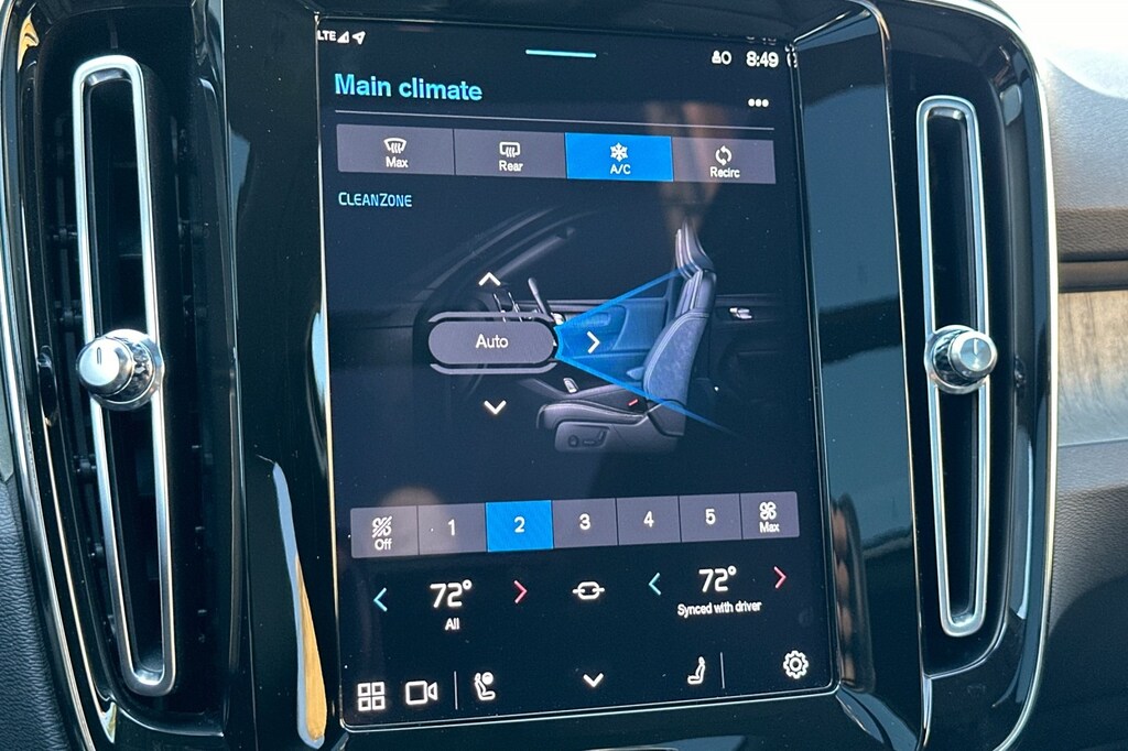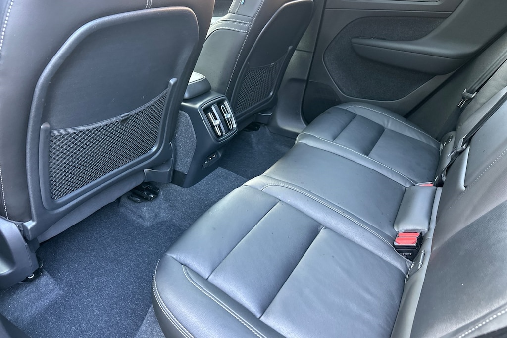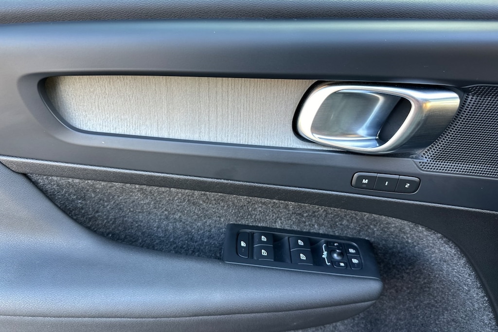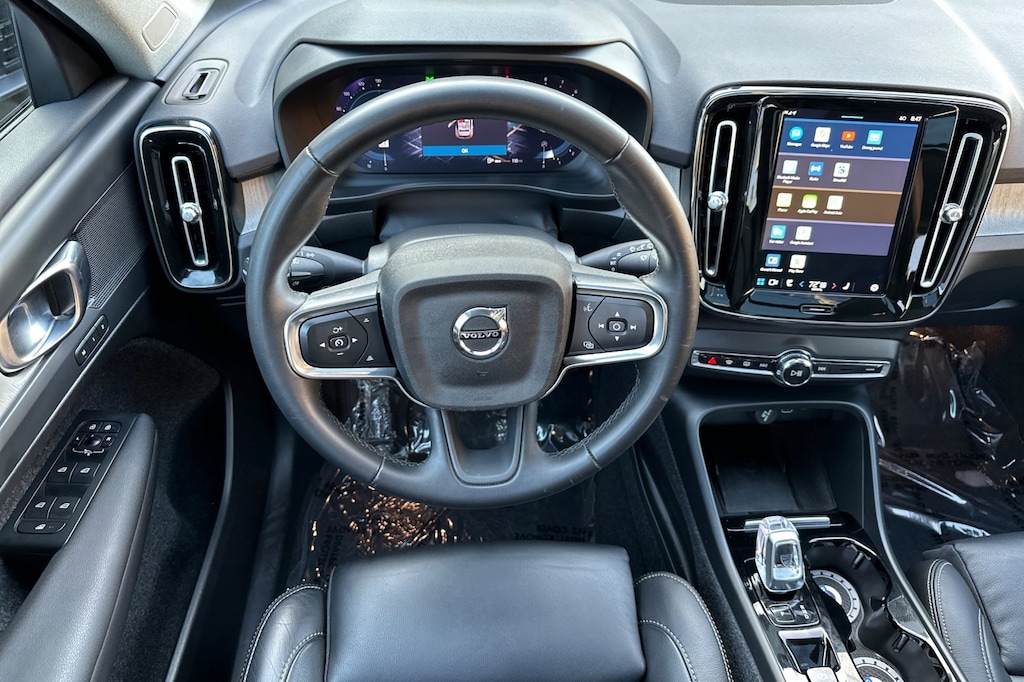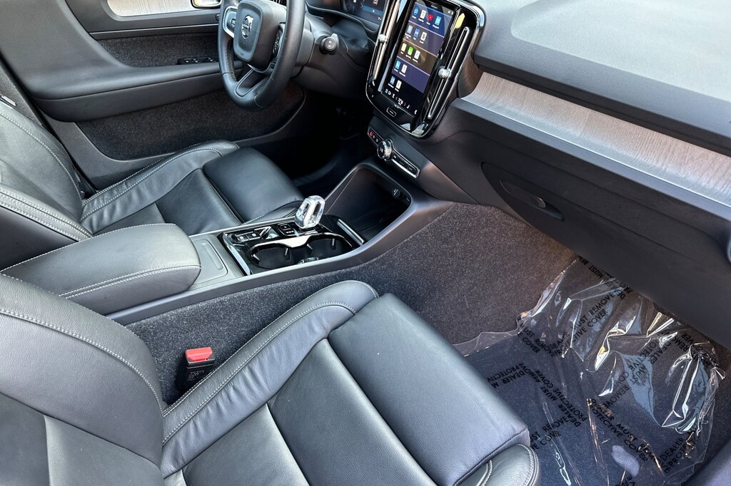 Apple CarPlay, Brake assist, Electronic Stability Control, Exterior Parking Camera Rear, Heated front seats, Internet access capable: Digital Services Package w/ 4 Year Subscription, Navigation System, Power moonroof, Spoiler. Internet access capable: Digital Services Package w/ 4 Year Subscription, Apple CarPlay, Brake assist, Electronic Stability Control, Exterior Parking Camera Rear, Heated front seats, Navigation System, Power moonroof, Spoiler, 4-Wheel Disc Brakes, 8 Speakers, ABS brakes, Air Conditioning, Alloy wheels, AM/FM Radio, AM/FM radio: SiriusXM, Auto High-beam Headlights, Auto-dimming door mirrors, Auto-dimming Rear-View mirror, Automatic temperature control, Bumpers: body-color, Connect Suede Textile/Microtech Seating Surfaces, Delay-off headlights, Driver door bin, Driver vanity mirror, Dual front impact airbags, Dual front side impact airbags, Emergency communication system: Volvo Cars App w/4 Year Subscription, Four wheel independent suspension, Front anti-roll bar, Front Bucket Seats, Front Center Armrest, Front dual zone A/C, Front fog lights, Front reading lights, Fully automatic headlights, Garage door transmitter: HomeLink, Heated door mirrors, Illuminated entry, Knee airbag, Low tire pressure warning, Memory seat, Occupant sensing airbag, Outside temperature display, Overhead airbag, Overhead console, Panic alarm, Passenger door bin, Passenger vanity mirror, Power door mirrors, Power driver seat, Power passenger seat, Power steering, Power windows, Radio data system, Rain sensing wipers, Rear anti-roll bar, Rear fog lights, Rear reading lights, Rear seat center armrest, Rear window defroster, Rear window wiper, Remote keyless entry, Security system, Speed control, Speed-sensing steering, Split folding rear seat, Steering wheel mounted audio controls, Tachometer, Telescoping steering wheel, Tilt steering wheel, Traction control, Trip computer, Turn signal indicator mirrors, Variably intermittent wipers, and Wheels: 18" 5-Double Spoke Black Diamond Cut Alloy.